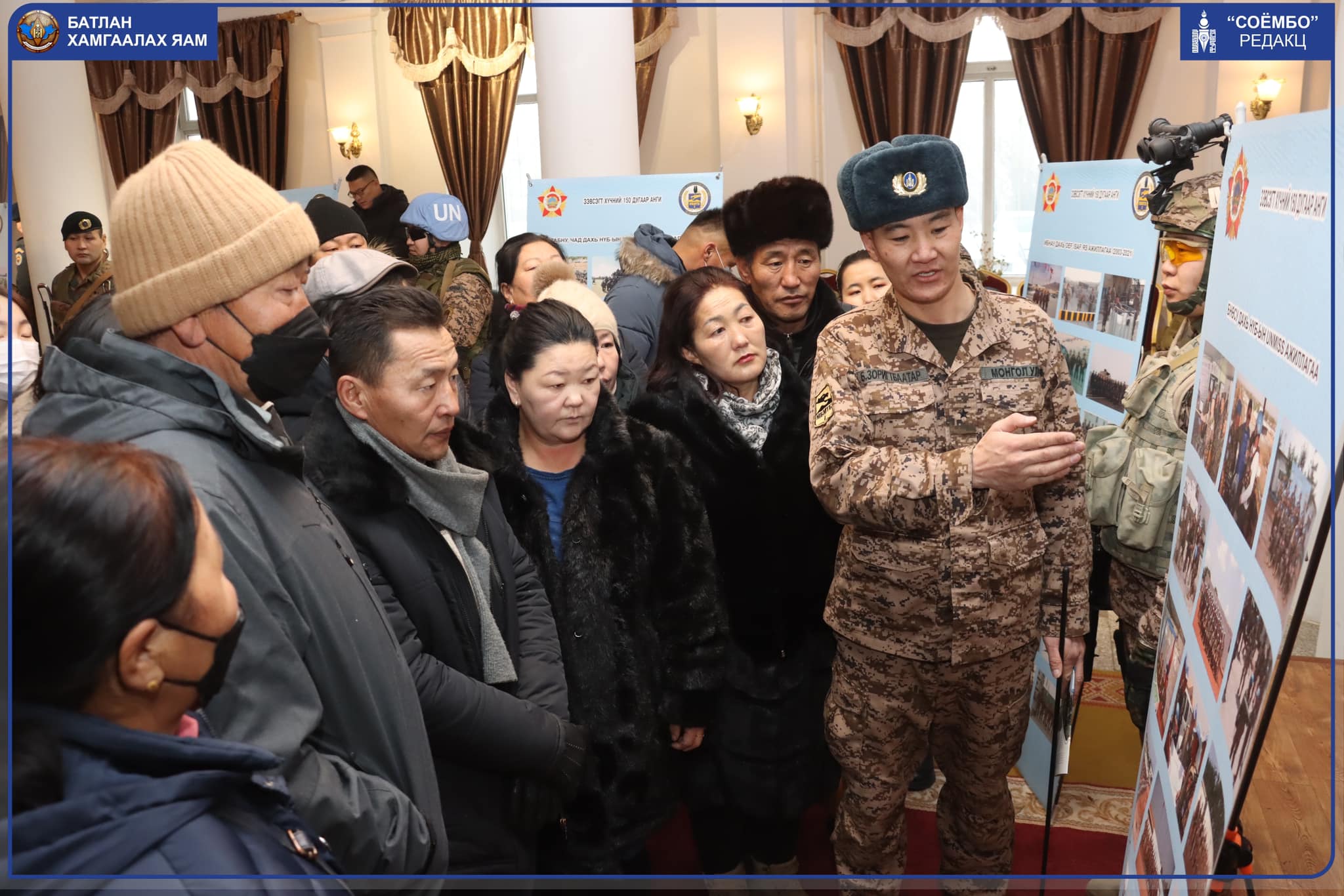 Батлан хамгаалахын сайдын Г.Сайханбаяр Бүгд найрамдах Өмнөд Судан Улсад явагдаж буй НҮБ-ын энхийг сахиулах "UNIMISS" ажиллагаанд үүрэг гүйцэтгэх XII ээлжийн цэргийн багийн бие бүрэлдэхүүний ар гэрийн төлөөлөлтэй уулзалт хийлээ. Уулзалтын үеэр НҮБ-ын энхийг сахиулах ажиллагааны талаар болон монгол цэргүүдийн үүрэг гүйцэтгэлтийн байдал, гарч буй бодлогын шинэчлэлт өөрчлөлтүүдийн талаар мэдээлэл өглөө.