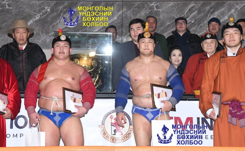 | Харцага цолны хүндэтгэлийн барилдаанд Б.Бат-Өлзий түрүүлж, Р.Пүрэвдагва үзүүрлэлээ |