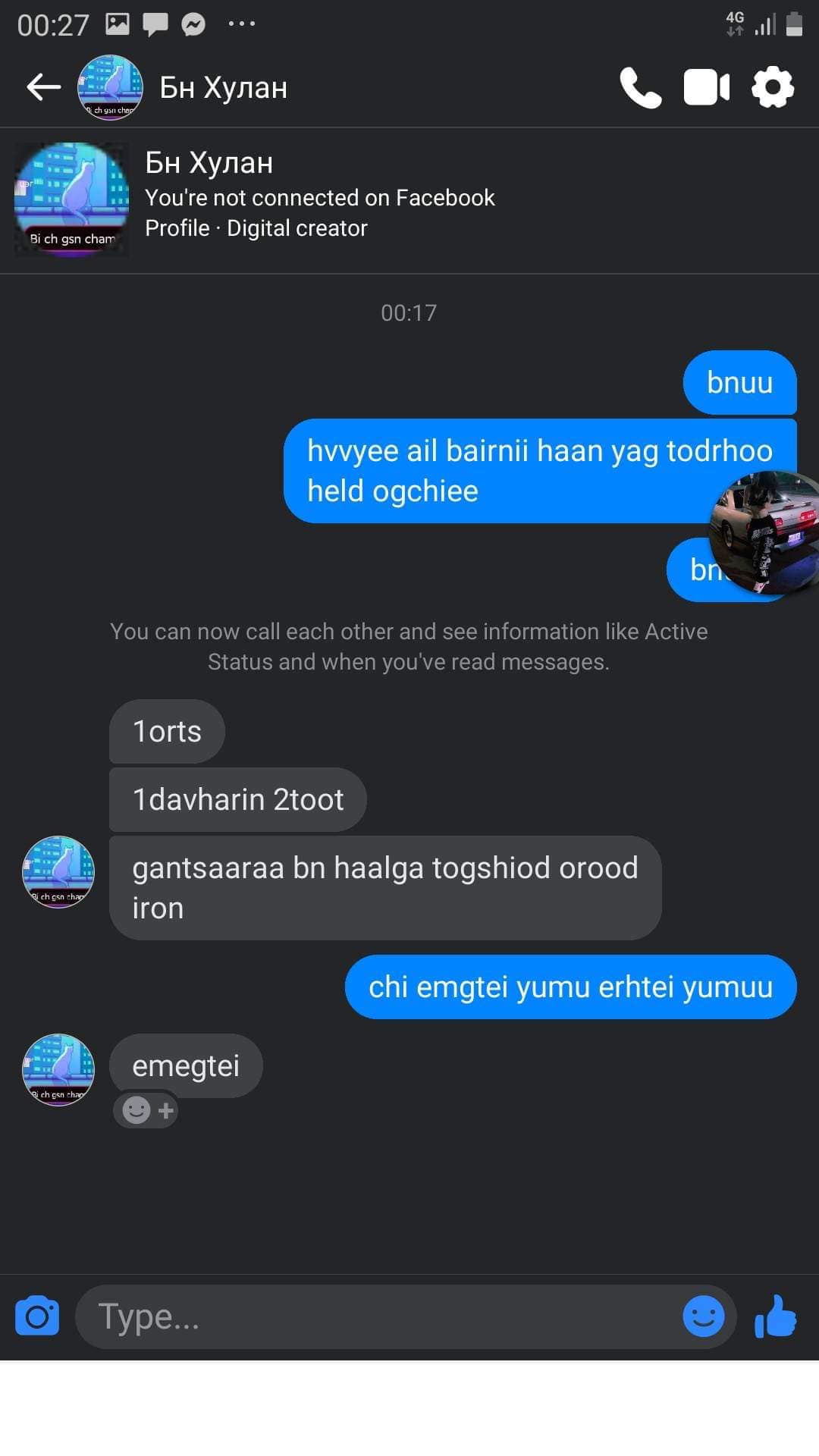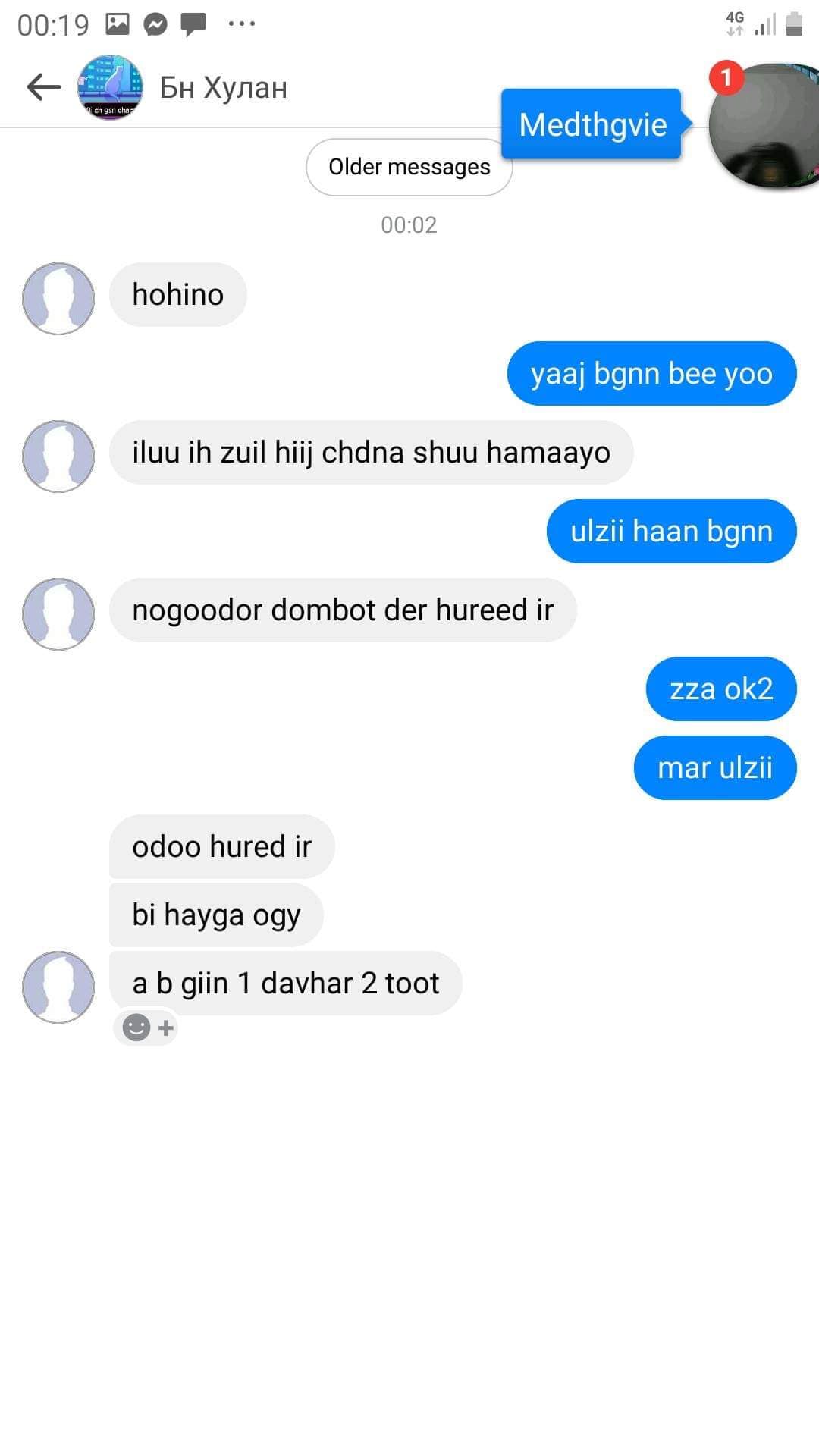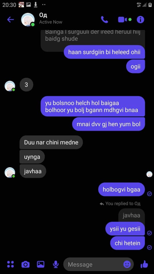 Ховд аймгийн Жаргалант сумын Наран багт амьдардаг байсан 15 настай охин бусдын гарт амиа алдсан байж болзошгүй хэрэг нэгдүгээр сарын 28-нд гарсан. Тэгвэл талийгаач охины үеэл, охин руу нууц хаягнаас дарамталж бичдэг байсан зурвасууд ил боллоо. Үеэл найз нь охинд "А,Б байрны нэгдүгээр орцны хоёр тоотот ир, дүү чинь эмнэлэгийн орон дээр хэвтэх үү, би хэвтэхүү үзье" гэх утгатай заналхийлсэн чат явуудаг байжээ. Харин талийгаач нас барсны дараа уг хаягаа блок хийгээд алга болсон байна.
