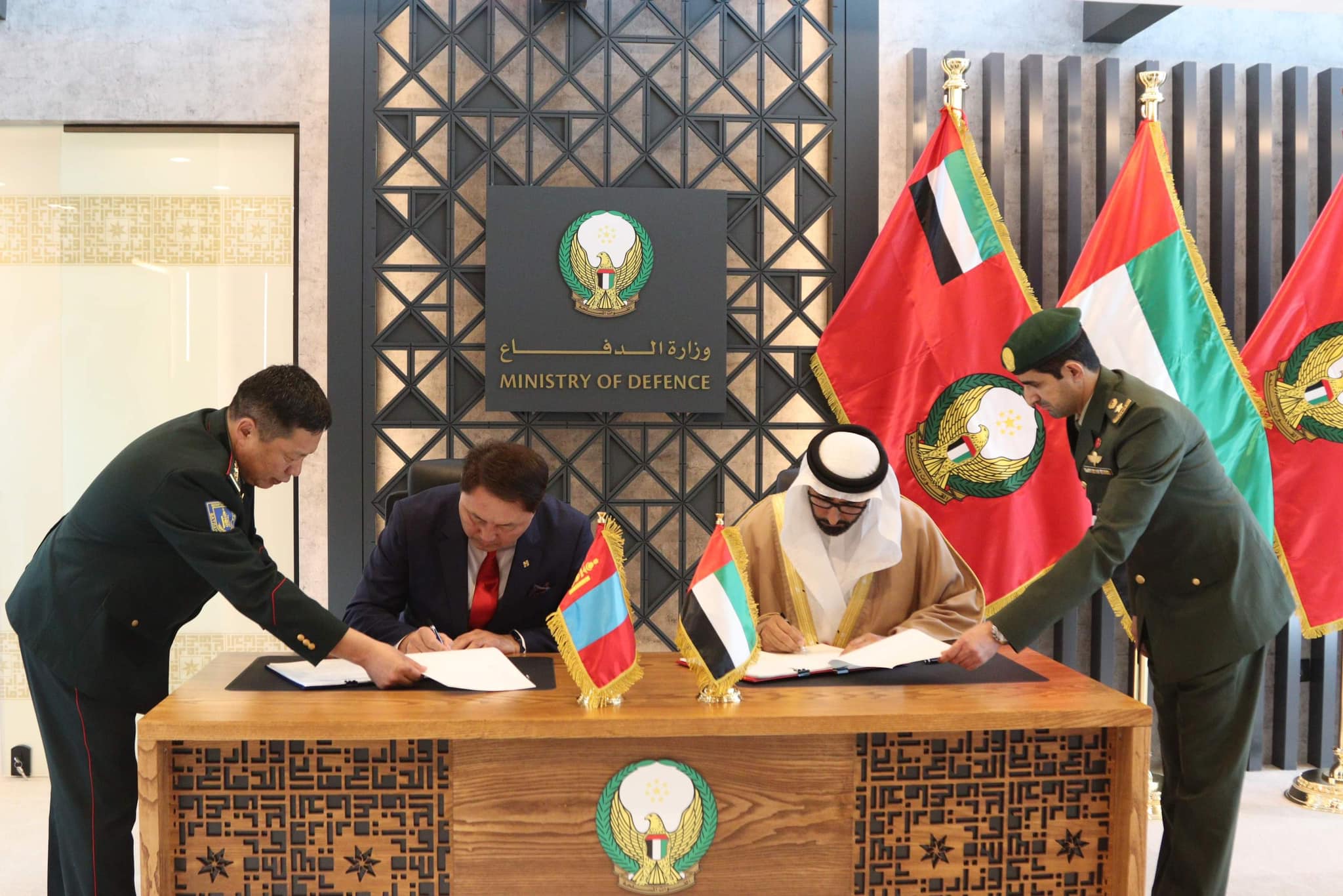 Уулзалтын төгсгөлд сайд нар Монгол Улсын Батлан хамгаалах яам, Арабын Нэгдсэн Эмират Улсын Батлан хамгаалах яамд хоорондын батлан хамгаалах салбарт хамтран ажиллах тухай “Харилцан ойлголцлын санамж бичиг”-т гарын үсэг зурлаа. “Харилцан ойлголцлын санамж бичиг” байгуулснаар Арабын Нэгдсэн Эмират Улстай батлан хамгаалах салбарт хамтран ажиллах эрх зүйн орчин бүрдэж, цэргийн хамтын ажиллагааг албан ёсоор эхлүүлснээр Монгол Улсын Батлан хамгаалах яам дэлхийн 39 дэх улстай цэргийн дипломат харилцаа тогтоосон түүхэн үйл явдал болжээ.