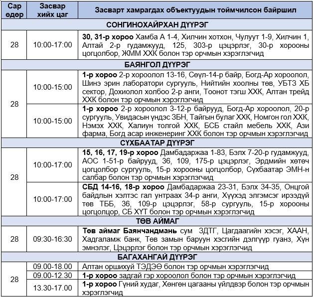 | Өнөөдөр цахилгааны хязгаарлалт хийх хуваарь |