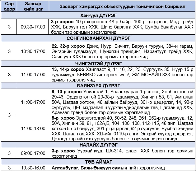 | УБЦТС: Маргааш хийгдэх засварын хуваарь |