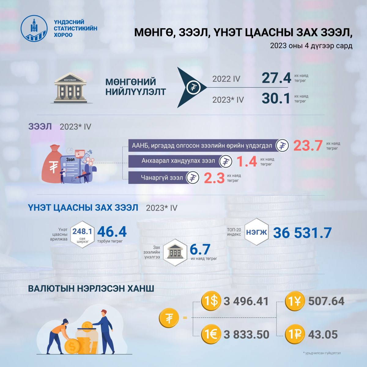 | ҮСХ:Мөнгөний нийлүүлэлт өмнөх оны мөн үеэс 2.7 их наядаар нэмэгдсэн |