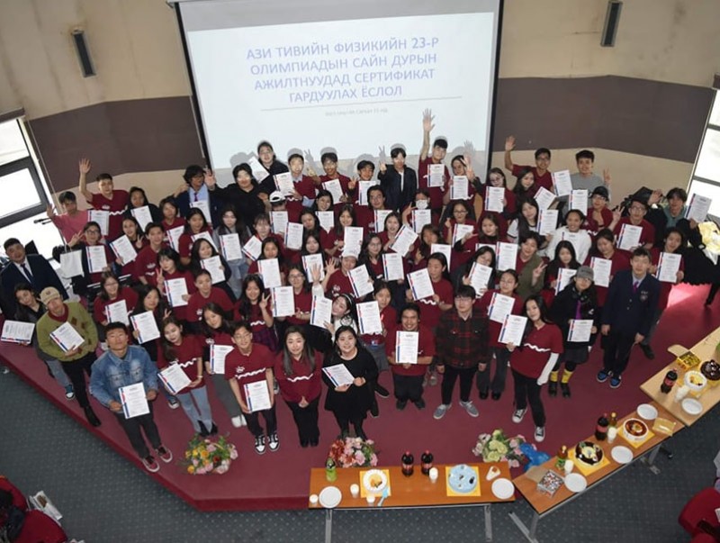 Азийн физикийн олимпиадад сайн дурын ажилтнаар ажиллахаар 340 хүүхэд бүртгүүлсэн. Тэднээс хэлний онооны шалгуураар 100 хүүхдийг сонгож олимпиадын туршид хамтран ажилласан юм. Өчигдөр тэдэнд сертификат гардууллаа.