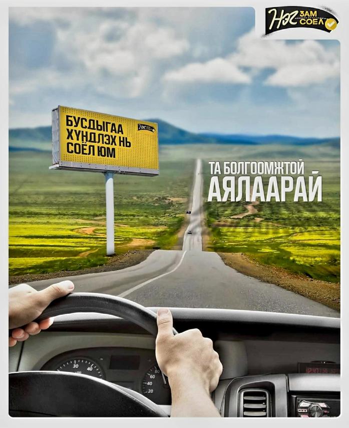 Цагдаагийн ерөнхий газрын Тээврийн цагдаагийн албанаас замын хөдөлгөөн соёлтой оролцож, зам тээврийн осол, гэмтлээс урьдчилан сэргийлэх уриалга дэвшүүлдэг нөлөөллийн аян энэ жил “Нэг зам-Нэг соёл” уриа дор зохион байгуулагдаж байна. Аяны хүрээнд Баянзүрх дүүргийн Замын цагдаагийн хэлтэс орон нутгийн зам дагуу шалгалт хийж, замын хөдөлгөөнд соёлтой оролцож буй жолоочдыг “Монгол эм импекс концерн” компанийн гарын бэлгээр урамшууллаа.