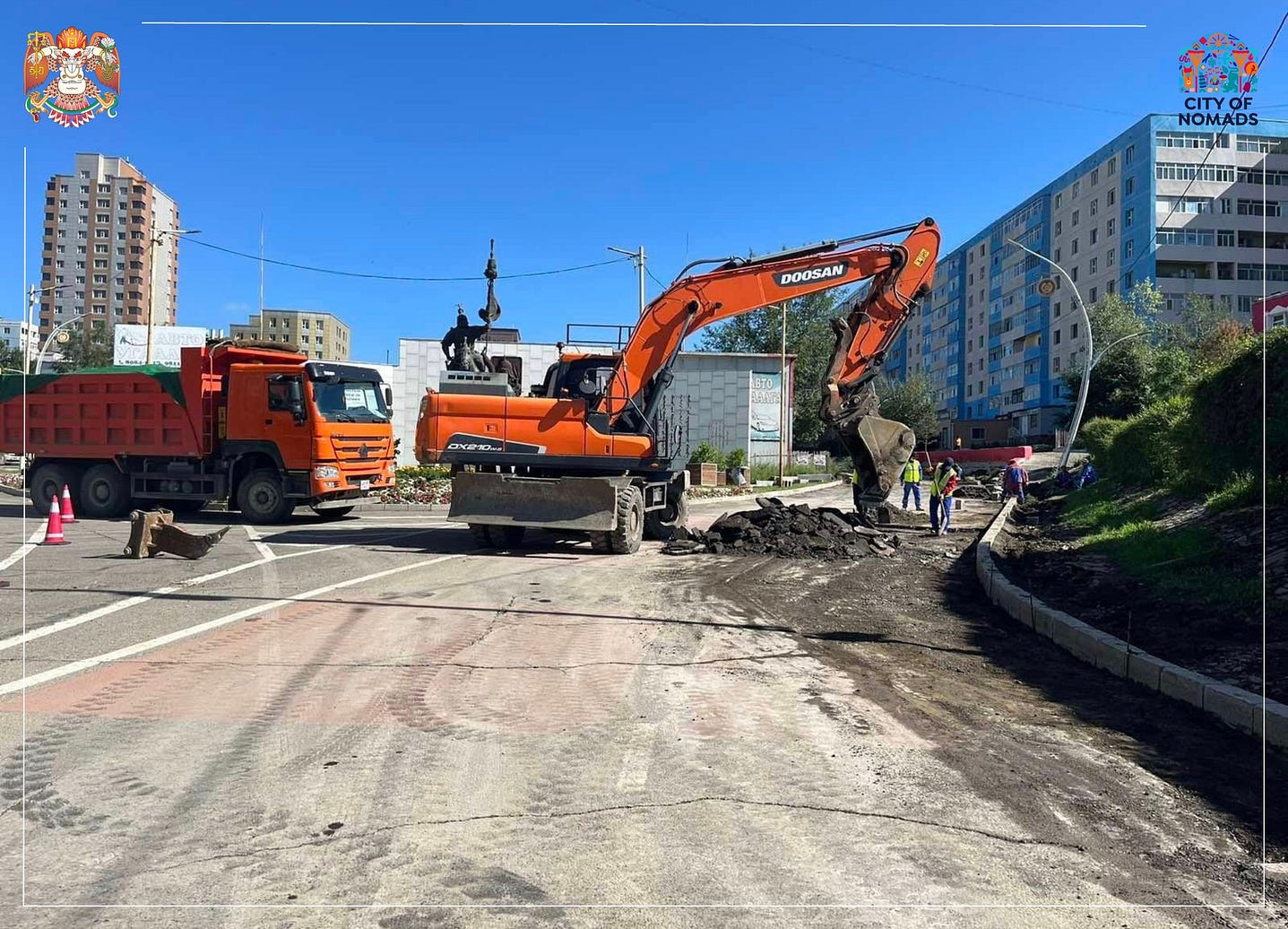 | 25 дугаар эмийн сангийн уулзвараас "Өргөө" кино театрын уулзвар хүртэлх авто замын эвдрэлийг засварлаж байна |
