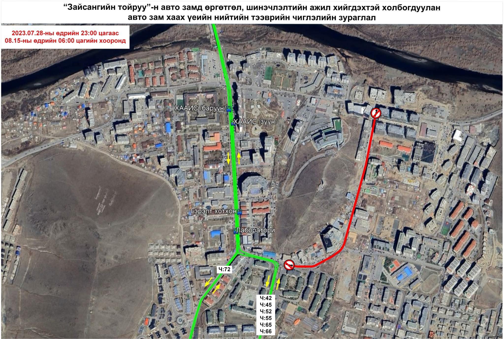 Тодруулбал, долдугаар сарын 28-ны өдрийн 23:00 цагаас наймдугаар сарын 15-ны өдрийн 06:00 цаг хүртэл тус замын хөдөлгөөнийг хязгаарлаж, засвар шинэчлэл хийнэ. Иймд авто замын засвар, шинэчлэлтэй холбогдуулан дараах долоон чиглэлд түр өөрчлөлт оруулаад байна.