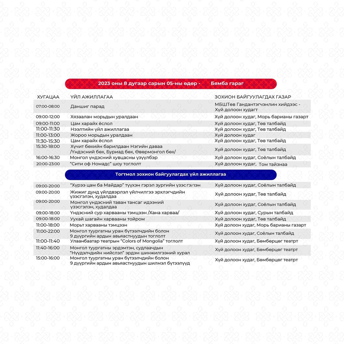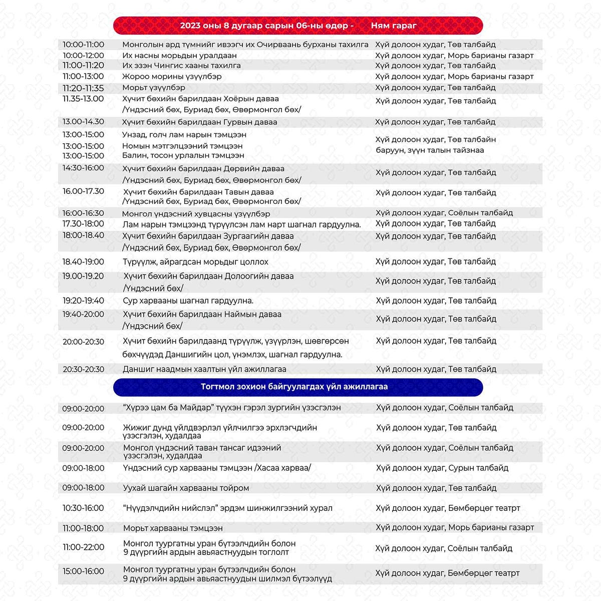 | ТАНИЛЦ: "Монголчуудын өв соёлын даншиг наадам-хүрээ цам 2023" наадмын хөтөлбөр |