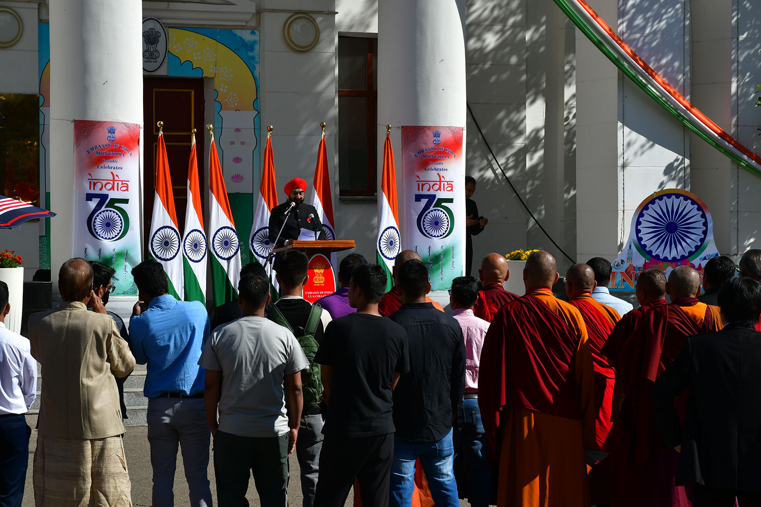 Төрийн далбааг мандуулсны дараа Элчин сайд Сингх оюун санааны хөрш, стратегийн түнш Монгол Улстай түүхэн найрамдалт харилцаатай байсаар ирсэн талаар гайхалтай үг хэлж, Газрын тос боловсруулах үйлдвэр, Мэдээллийн технологийн төв, Найрамдлын сургууль, чадавхжуулах хөтөлбөрүүдийн ач холбогдол болон хоёр орны харилцааг гүнзгийрүүлэн бэхжүүлэхийн чухлыг онцлон тэмдэглэв.