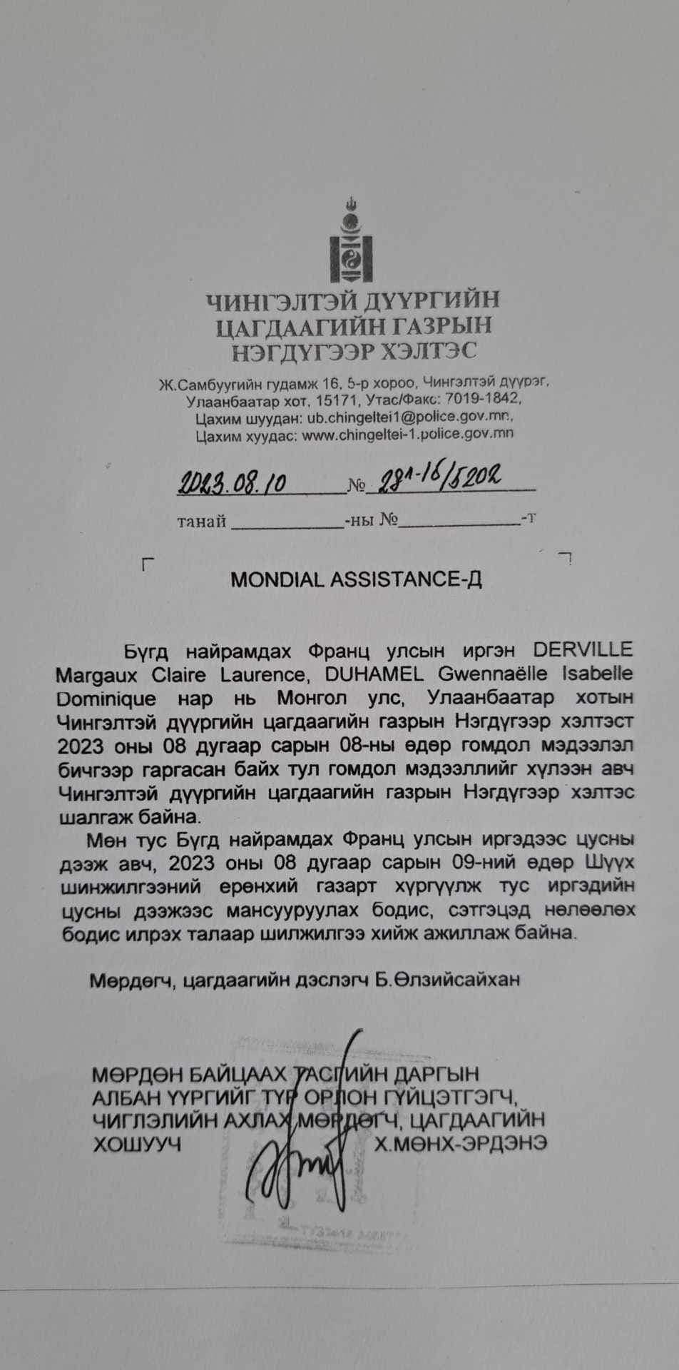 Уг гомдлын дагуу Чингэлтэй дүүргийн цагдаагийн хоёрдугаар хэлтэс шалгаж байгаа аж. Энэ талаарх мэдээллийг францын иргэн цахим хуудастаа хуваалцсан байна. Тодруулбал, "Монголын "BBT" аялал жуулчлалын компанийн менежер Е нь уух зүйлд мансууруулах бодис хийсэн байж болзошгүй. Тиймээс бид гомдол гаргасан. Сэрэмжлээрэй" гэх тайлбартайгаар оруулжээ.