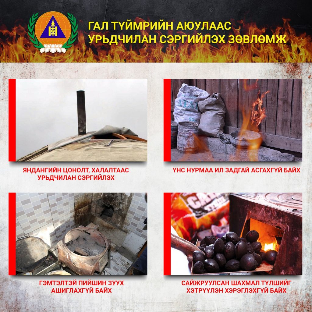 Иймд иргэд, аж, ахуйн нэгж, байгууллагуудад гал түймрийн аюулаас урьдчилан сэргийлэх зөвлөмжийг хүргүүлж байна. Үүнд: