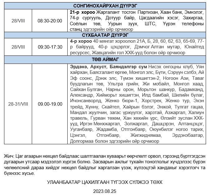 | ТАНИЛЦ: Маргааш цахилгаан шугамд засвар хийх хуваарь |