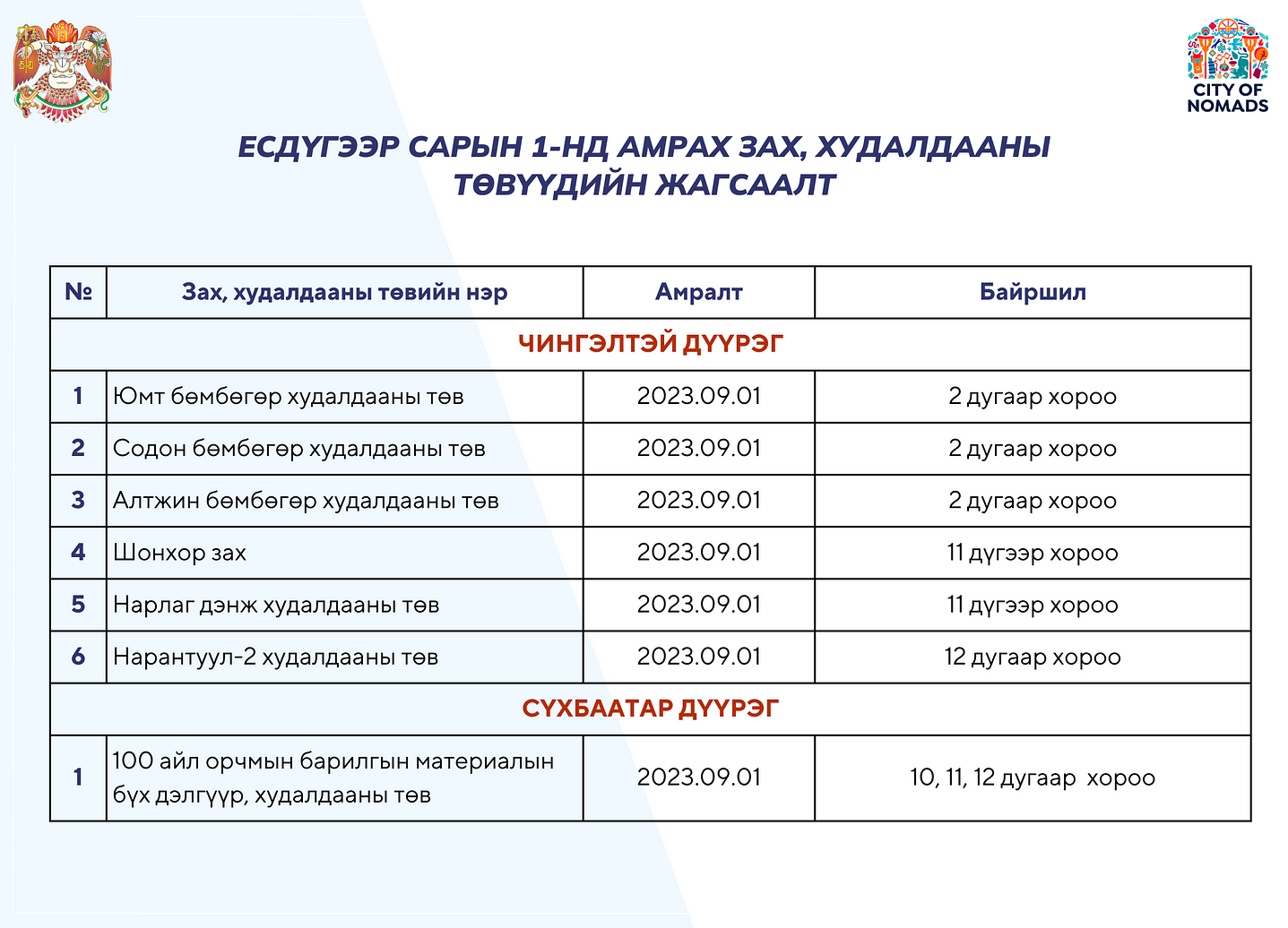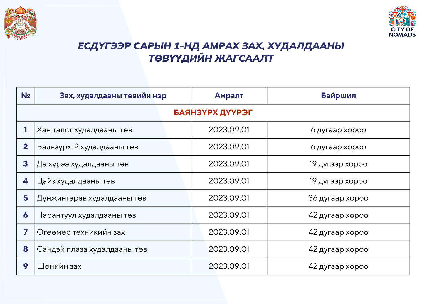 | Томоохон зах, худалдааны төвүүд есдүгээр сарын 1-нд амарна |
