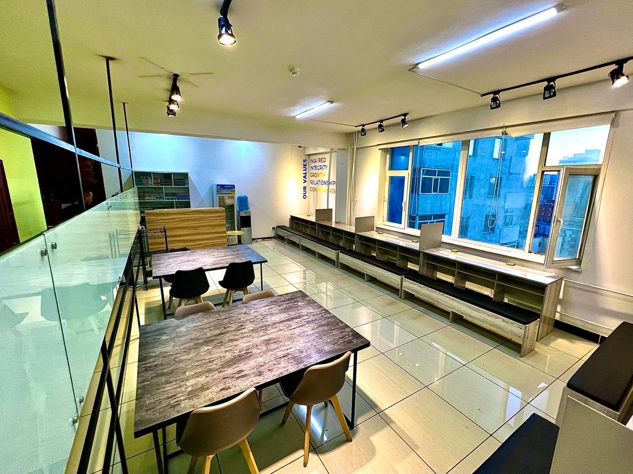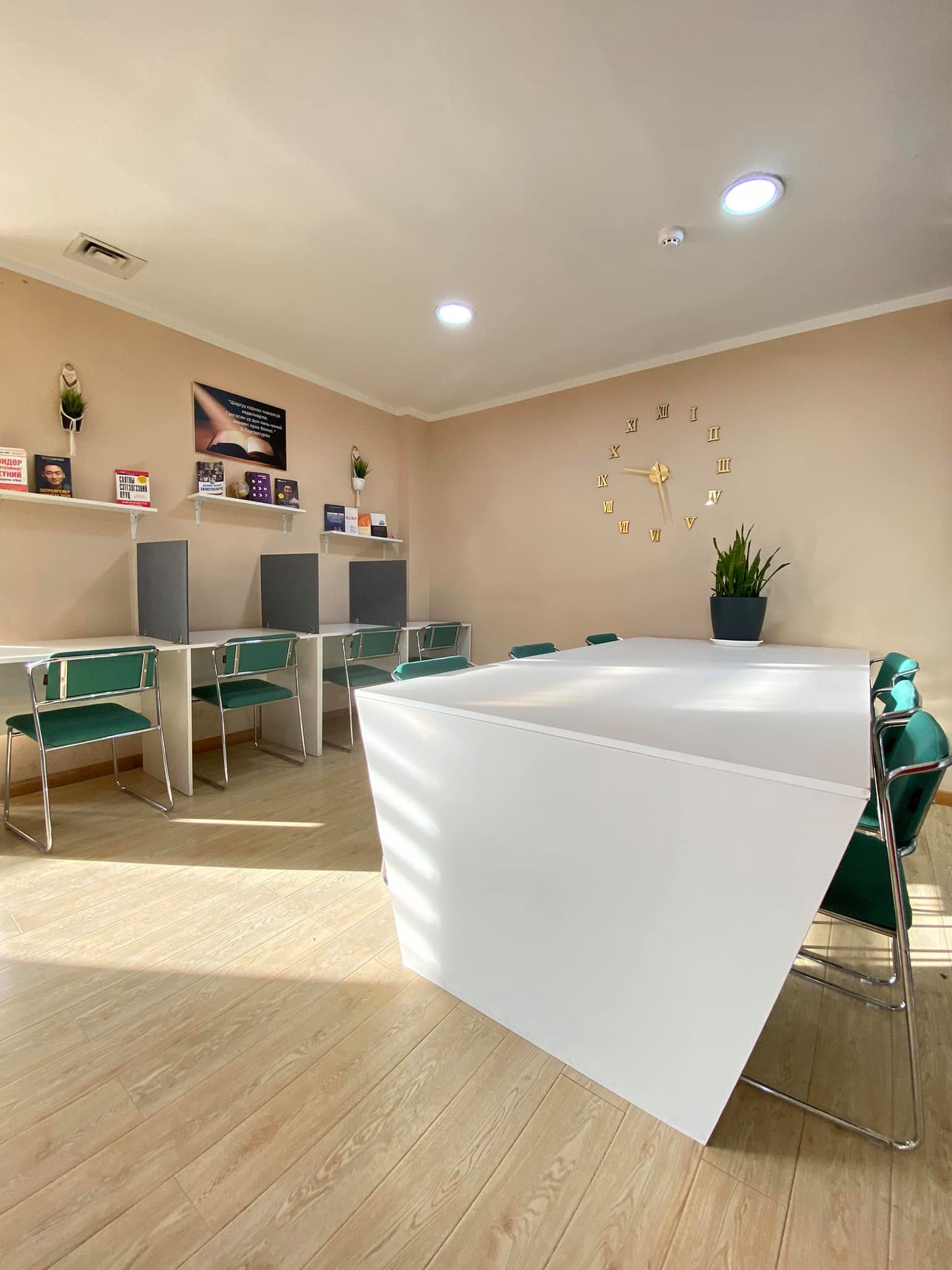 Энэ бол ганцаараа эсвэл анги хамт олноороо хичээл, сургалт зохион байгуулах боломжтой дундын оффис юм. Хоёр зааланд хуваагддаг бөгөөд найм давхарт 803 тоотод чимээгүй нам гүн орчинд төвлөрч суухад зориулсан танхим, есөн давхарт 901тоот Багаараа найз нөхдөөрөө хамт сууж хоорондоо ярилцах . Онлайн уулзалт хийх . Ганцаарчилсан сургалт уулзалт зохион байгуулах . Тайлбар тэмдэглэл, төлөвлөгөө боловсруулах зориулалттай самбаруудыг чөлөөтэй ашиглах боломжтой юм.