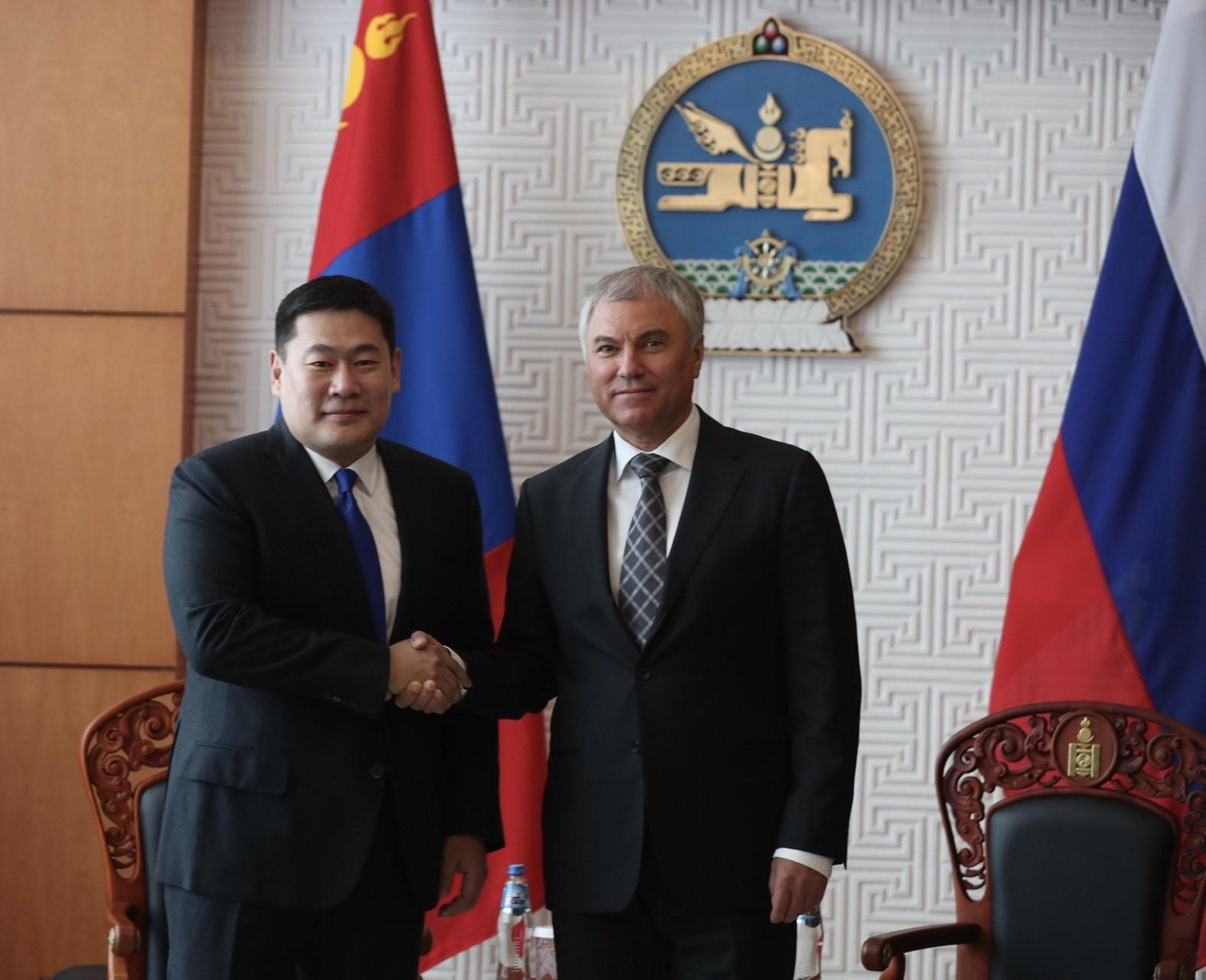 Ерөнхий сайд Л.Оюун-Эрдэнэ Монгол Улсад албан ёсны айлчлал хийж буй ОХУ-ын Холбооны Хурлын Төрийн Думын дарга В.В.Володинд есдүгээр сарын 24-нд бараалхлаа. Иж бүрэн стратегийн түншлэлд тулгуурласан Монгол, Оросын хамтын ажиллагаанд Монгол Улс тэргүүлэх ач холбогдол өгдгийг онцлон тэмдэглээд хоёр орны хооронд дээд, өндөр түвшний харилцан айлчлал идэвхжиж, харилцаа, хамтын ажиллагаа өргөжиж байгаад баяртай буйгаа Ерөнхий сайд илэрхийлэв. Монгол, Орос хоорондын худалдааны тэнцвэргүй байдлыг багасгах, төмөр зам, эрчим хүчний салбарт хэрэгжүүлж буй хамтарсан төслүүдийн хэрэгжилтийг түргэтгэх, бүс нутгийн хамтын ажиллагааг идэвхжүүлэх, боловсрол, соёл, спортын салбарын хамтын ажиллагааг хөгжүүлэх зэрэг өргөн хүрээний асуудлаар талууд санал солилцов.