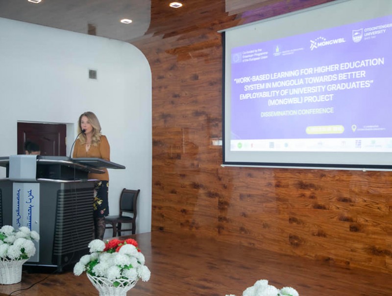 “Дээд боловсролын тогтолцоонд ажлын байранд суурилсан сургалтыг нэвтрүүлж, төгсөгчдийн хөдөлмөр эрхлэлтийг нэмэгдүүлэх нь” ERASMUS+MONGWBL төслийн үр дүнгийн хэлэлцүүлэг боллоо. Европын холбооны төлөөлөл Герман, Франц, Румын, Грек улсын их сургуулиуд, Монгол Улсаас БШУЯ, Отгонтэнгэр их сургууль, Санхүү эдийн засгийн их сургууль, Хөдөө аж ахуйн их сургууль, Дорнод их сургууль, Соёл урлагийн их сургууль, Төрийн банк, Голомт банк, Монголын аялал жуулчлалын холбоо хамтран энэ төслийг хэрэгжүүлж байна.