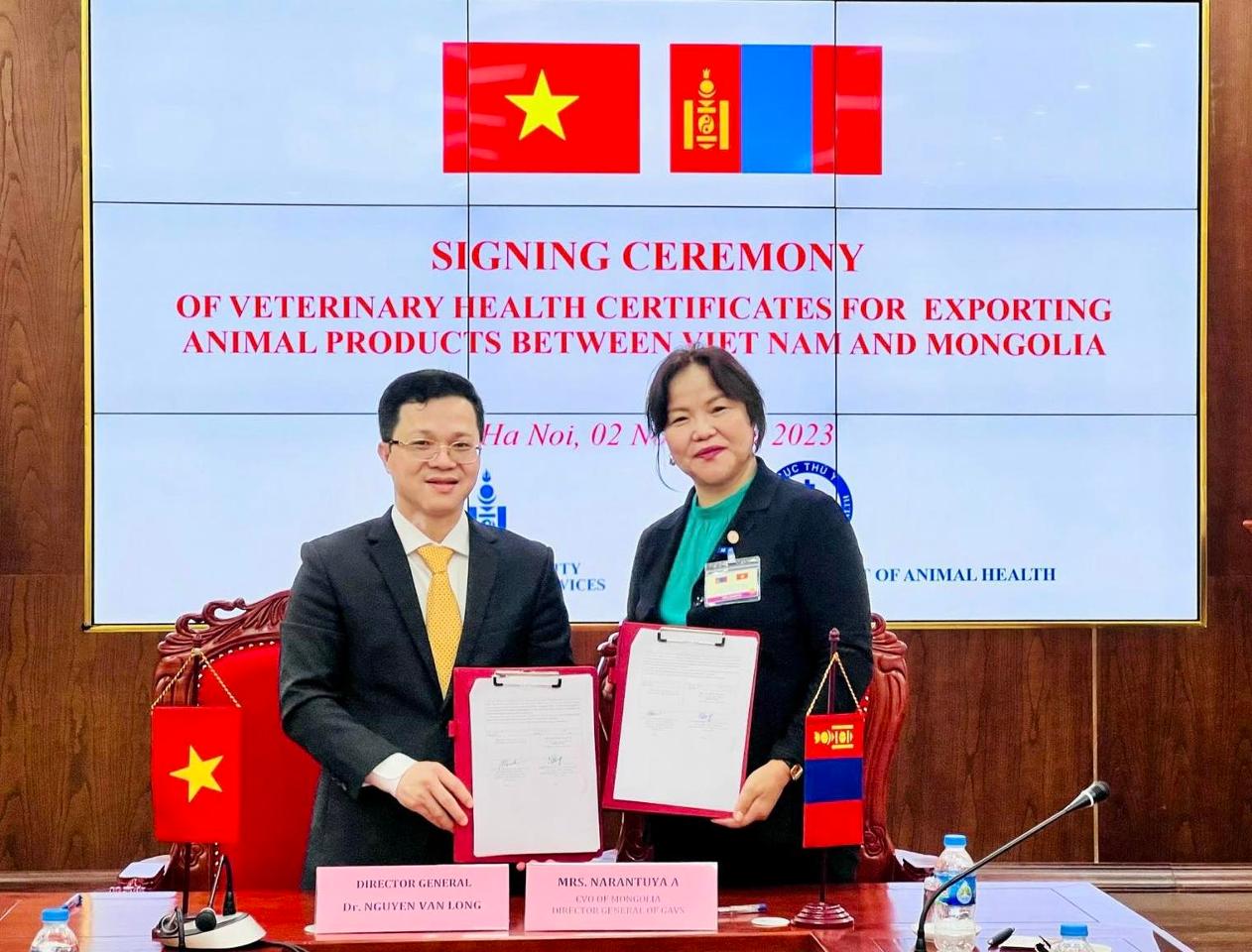 Ийнхүү 10 гаруй жил хүлээгдэж байсан дээрх ажлыг Монгол Улсын талаас Засгийн газрын хэрэгжүүлэгч агентлаг, Мал эмнэлгийн ерөнхий газрын дарга, Монгол Улсын Малын ерөнхий эмч, доктор А.Нарантуяа, БНСВУ-ын талаас ХААХХЯ-ны харьяа Мал эмнэлгийн ерөнхий газрын дарга, БНСВУ-ын Малын ерөнхий эмч, доктор Нгуен Ван Лонг нар 2023 оны арваннэгдүгээр сарын 02-ны өдөр дээрх гэрчилгээнүүдийг баталгаажуулж, гарын үсэг зурав.