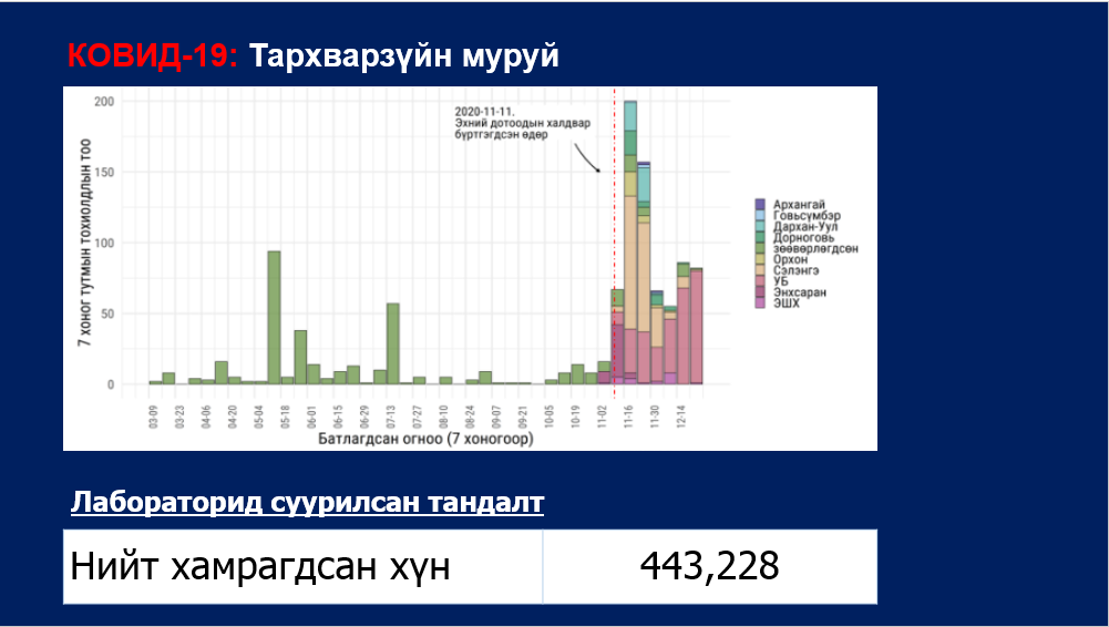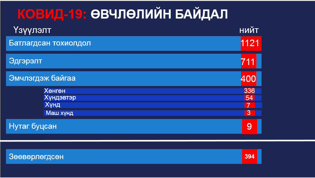 Монгол Улсад бүртгэгдсэн "Ковид-19" халдварын өнөөгийн тархалт, нөхцөл байдлын талаарх тоон мэдээллийг хүргэж байна.