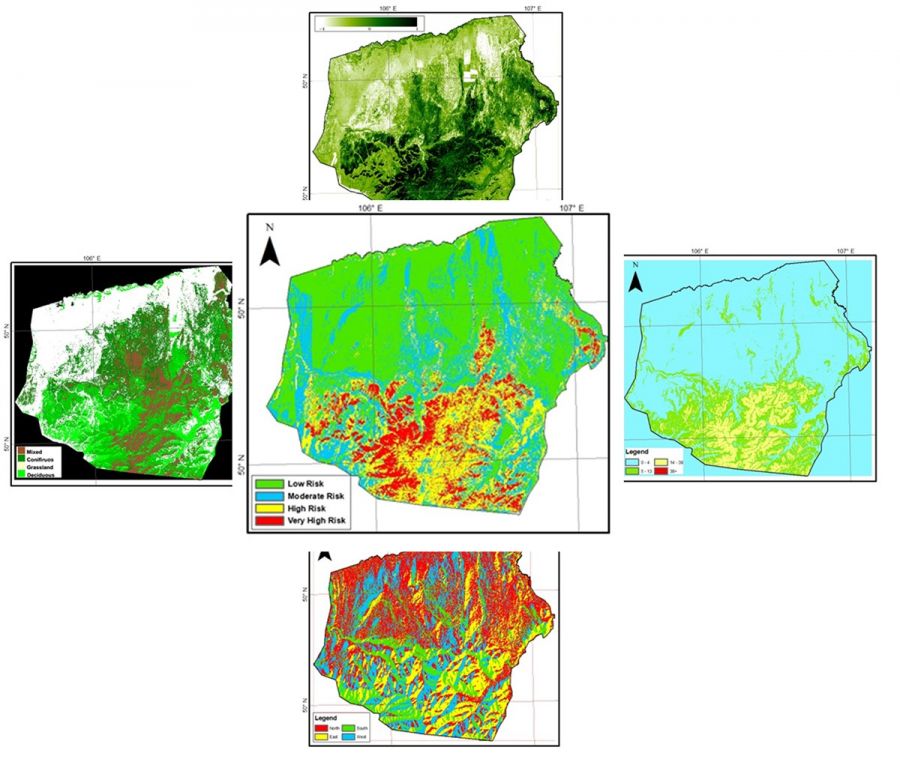 Газарзүй, геоэкологийн хүрээлэнгээс газарзүй мэдээллийн систем, зайнаас тандах судлалын технологи ашиглан Тужийн нарс байгалийн цогцолборт газрын ой хээрийн түймрийн эрсдэлийн зураг гаргажээ. Судалгаанд өндөр нарийвчлалтай Sentinel 2A оптик болон Sentinel 1В радарын мэдээ ашиглан, хүний үйл ажиллагаатай холбоотой индексийг тодорхойлж, судалгааны талбай дахь суурьшлын бүс, төв замуудаас орчны бүсчлэлийг 1000м-ийн зайтай татжээ.