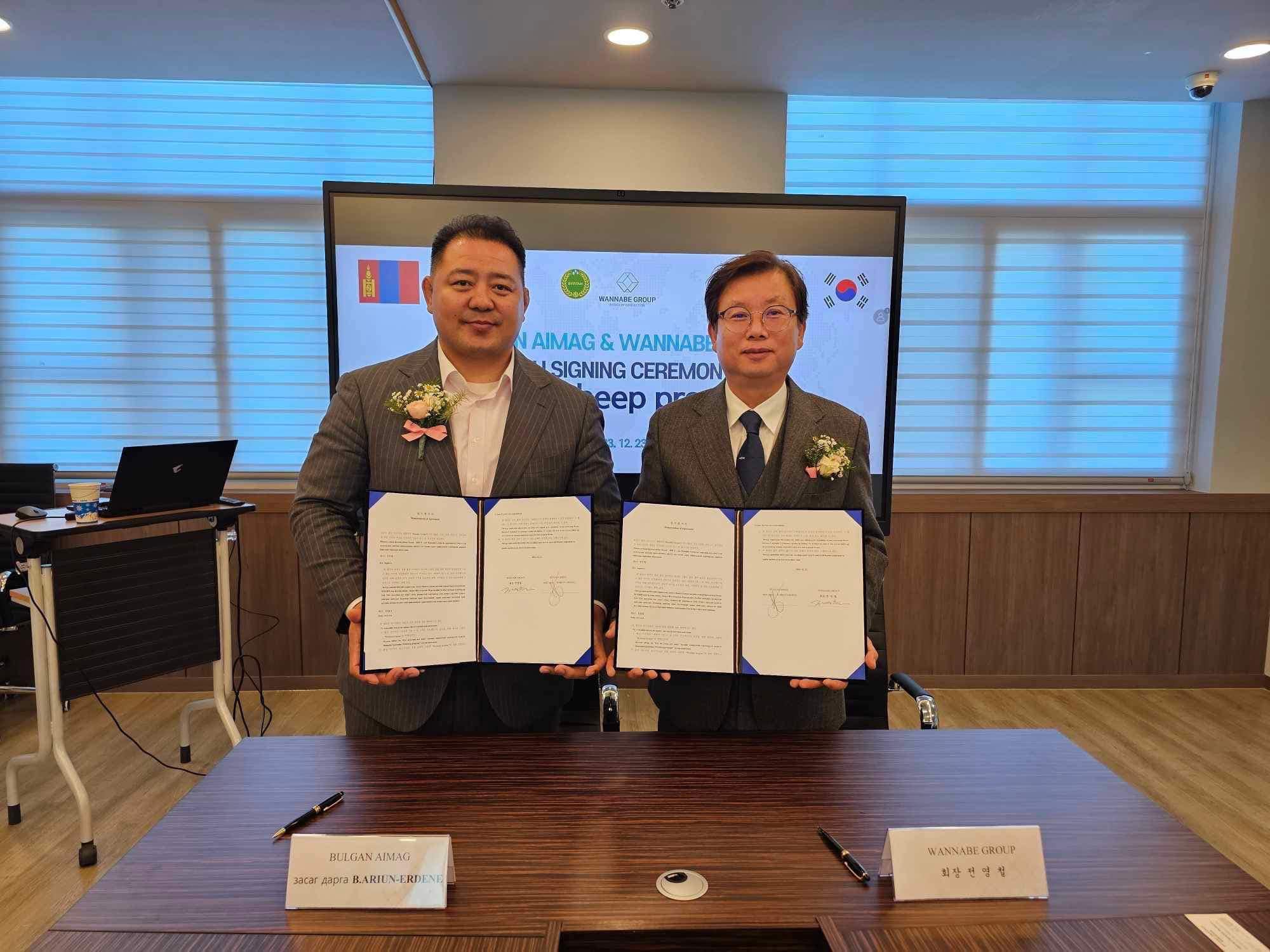 Булган аймгийн Засаг дарга Б.Ариун-Эрдэнэ БНСУ-д ажиллах үеэрээ “Нэг жуулчинд-Нэг хонь” хөтөлбөрийг хэрэгжүүлэхээр “Wannabe групп”-ын Jeon Young chul захиралтай харилцан ажиллахаар боллоо.