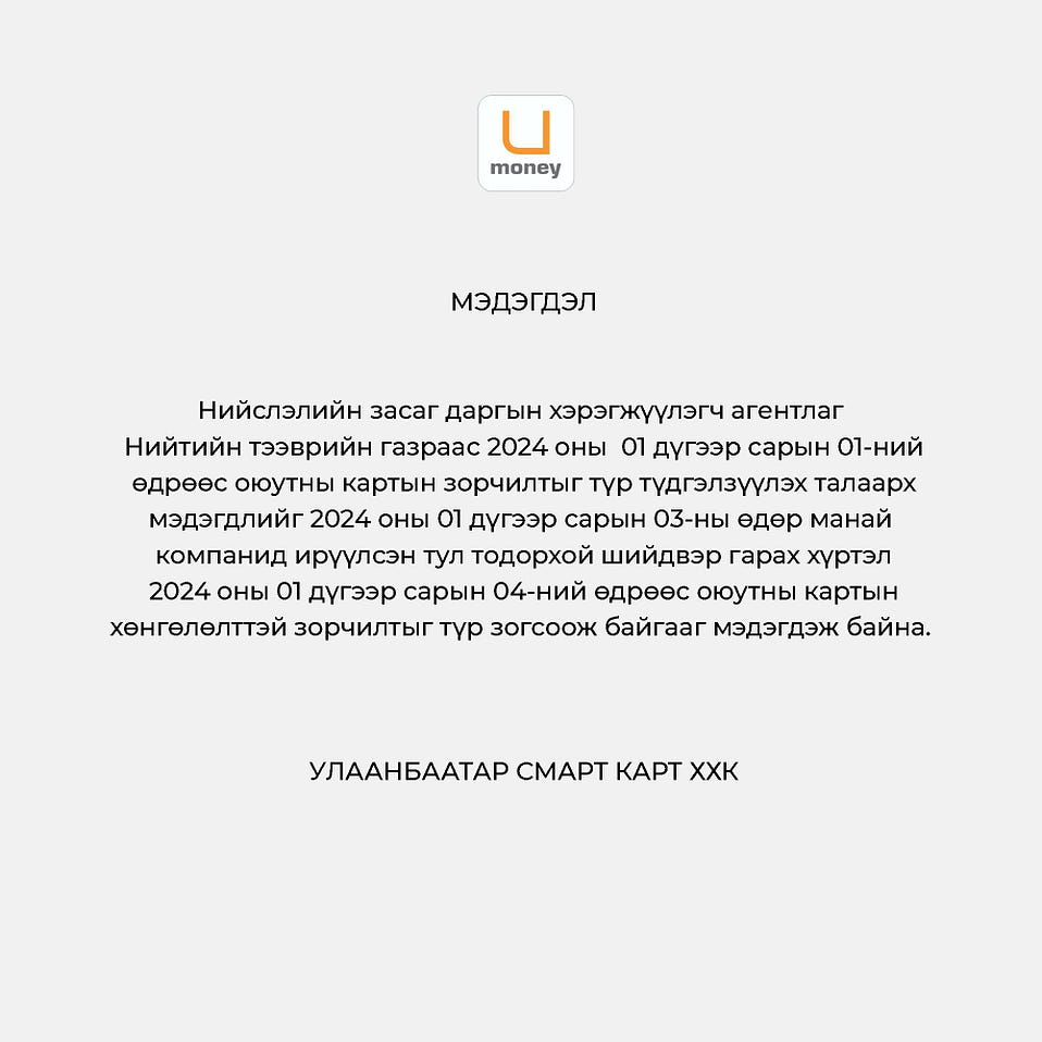 | Оюутны картын хөнгөлөлттэй зорчилтыг өнөөдрөөс түр зогсоолоо |