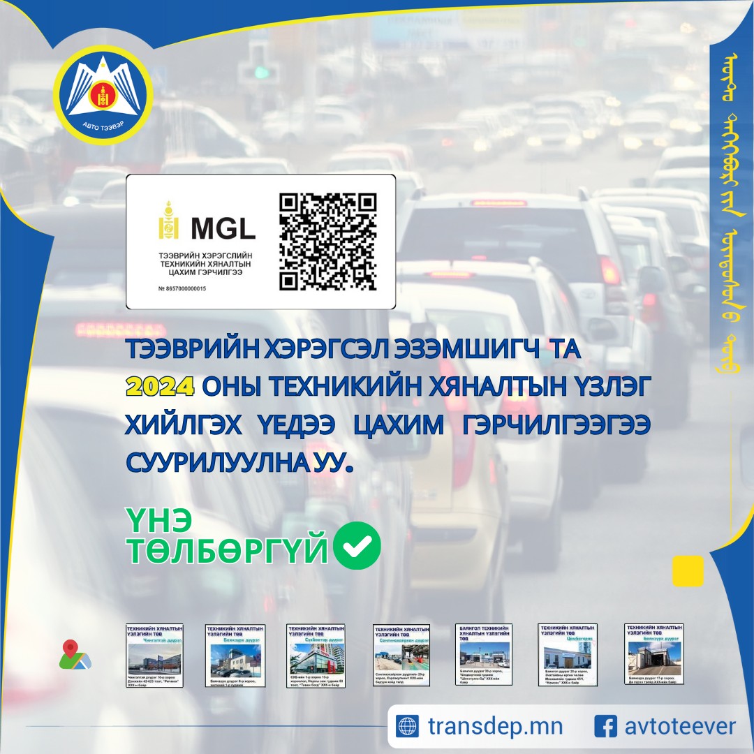 Мөн тээврийн хэрэгсэл эзэмшигч та дараалал үүсгэх шаардлагагүй, 2024 оны техникийн хяналтын үзлэгтээ хамрагдахдаа цахим гэрчилгээг суурилуулах боломжтой юм.