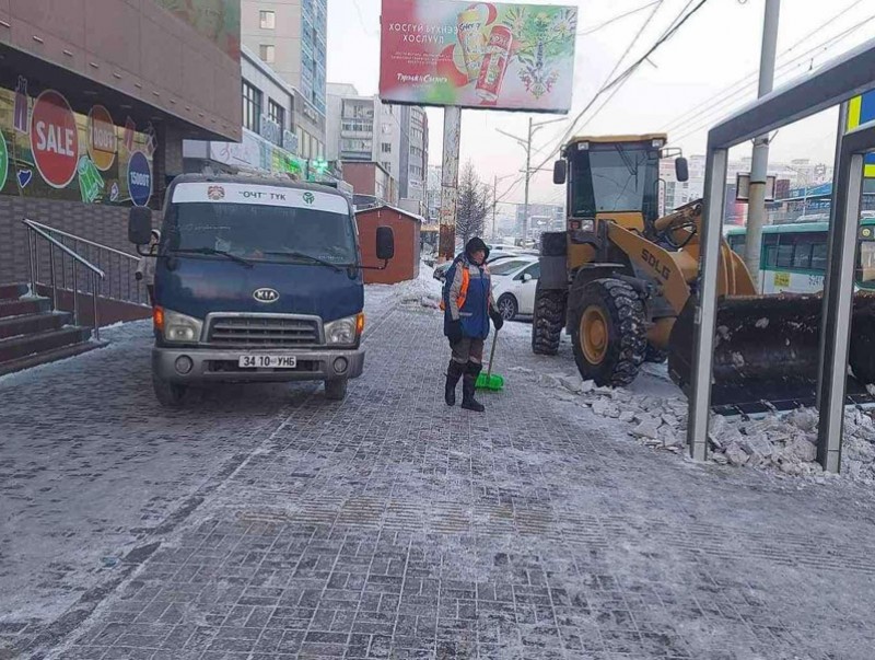 Тодруулбал, 25 байгууллагын 854 ажилтан албан хаагч тусгай зориулалтын 157 машин техниктэйгээр ажиллаж, халтиргаа гулгаа үүсэх эрсдэлтэй авто зам, гэр хорооллын дундах сүүдэр хэсгүүдэд нийт 82.5 тонн бодис, 137.5 тонн давс цацаж, цэвэрлэгээнээс гарсан 634.9 тонн хар цасыг ачиж тээвэрлэв. Түүнчлэн дүүргүүдийн нутаг дэвсгэрт үйл ажиллагаа эрхэлж буй 8331 аж ахуйн нэгж, байгууллага орчныхоо 50 метр талбайн цас мөсийг цэвэрлэсэн байна.