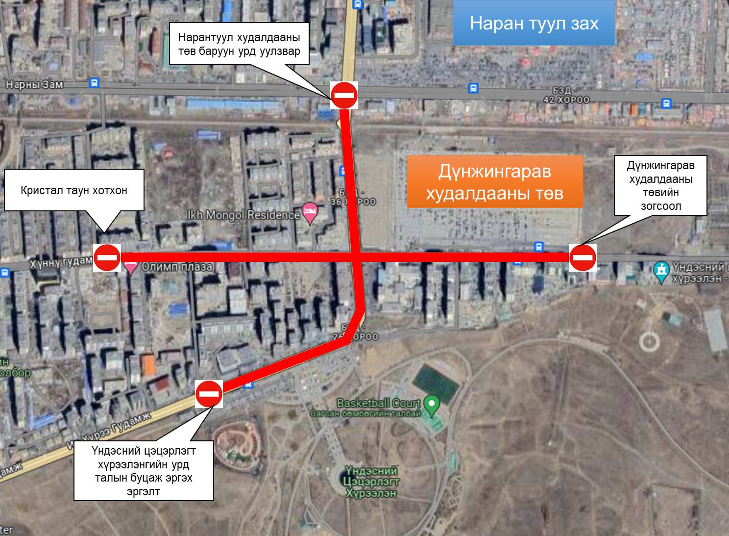 Тухайн орчмын замаар нийтийн тээврийн болон бусад тээврийн хэрэгсэл зорчих боломжгүй тул хөдөлгөөнд оролцогч та бүхэн дээрх замуудаас бусад замыг сонгон, үүрэг гүйцэтгэж байгаа алба хаагчдын хууль ёсны шаардлага, зөвлөмжийг дагаж, дэмжлэг үзүүлэн хөдөлгөөнд оролцоно уу.