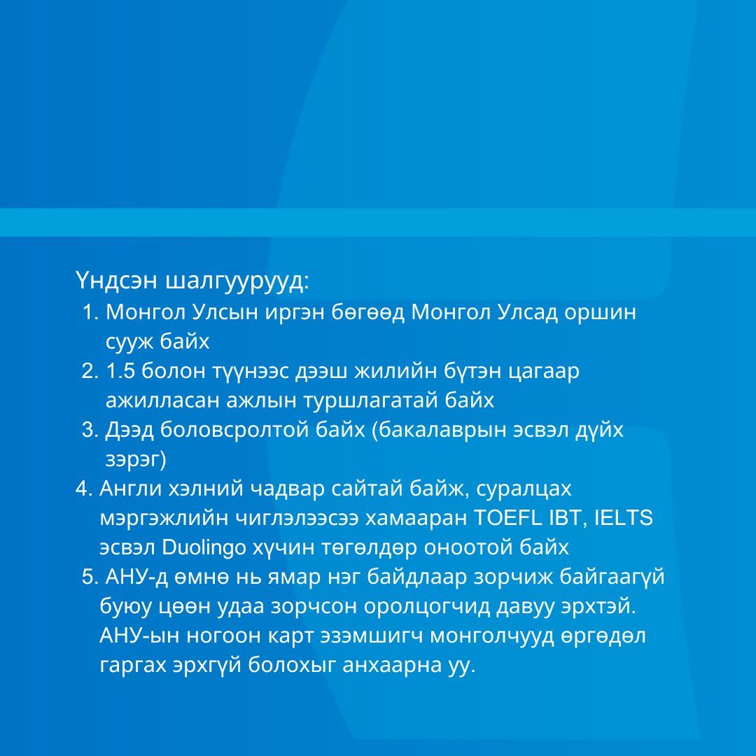 | 2025-2026 оны Фулбрайтын гадаад оюутны хөтөлбөрийн өргөдлийг дөрөвдүгээр сарын 29-н хүртэл авна |