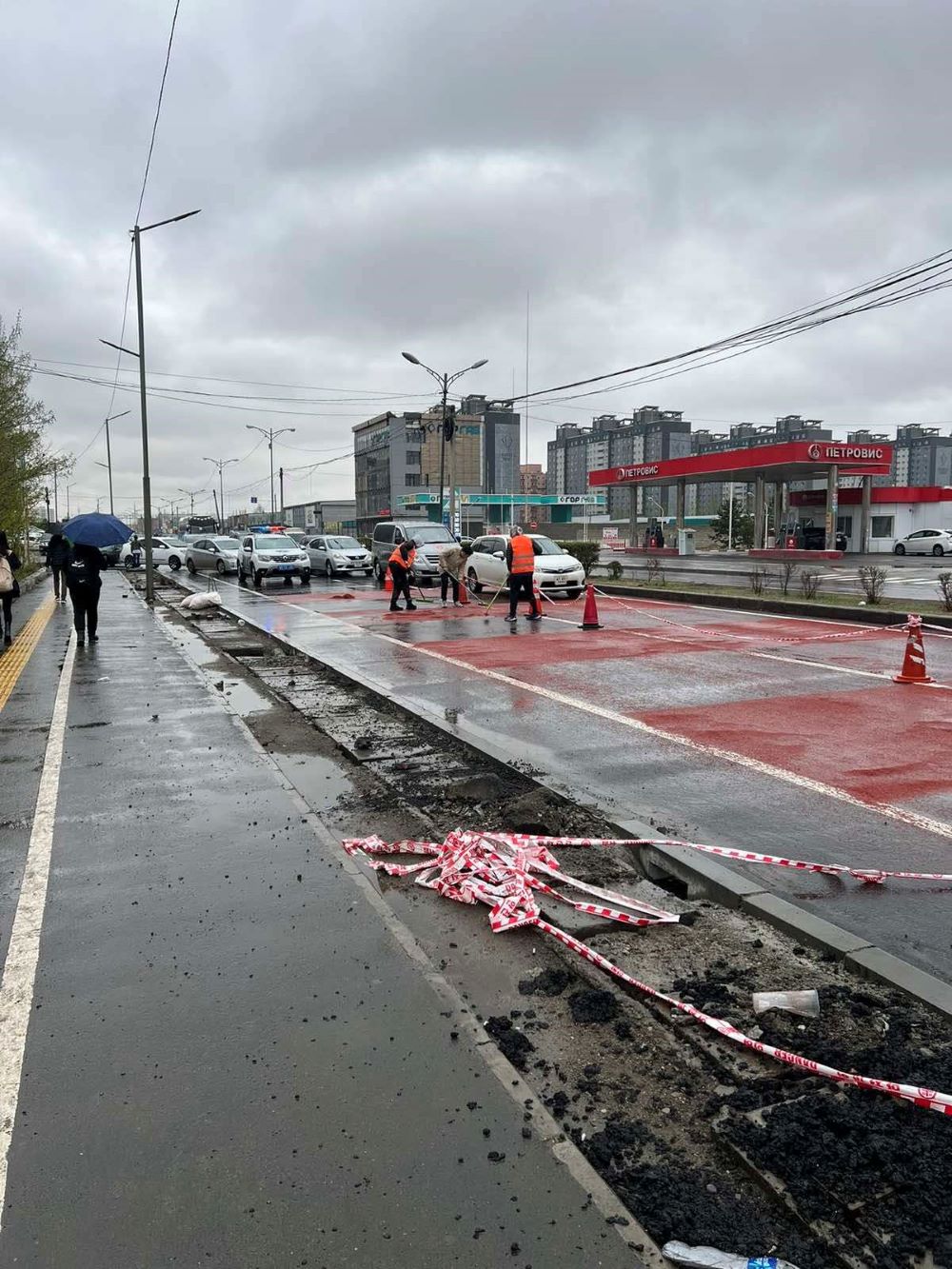Тэрбээр "Тус замын хэсэгчилсэн засвар, шинэчлэлтийн хүрээнд хийгдэж буй гарцны өмнөх өнгөт тэмдэглэгээний ажил бүрэн дуусаагүй байна. Борооны улмаас өнгөт тэмдэглэгээний илүүдэл материалууд урссан гэж олон нийтийн сүлжээгээр шүүмжилж байна. Технологийн дагуу өнгөт тэмдэглэгээний илүүдэл материалыг бэхжилтээ бүрэн авсны дараа цэвэрлэдэг. Ямар ч урсаж алга болсон зүйл байхгүй бөгөөд замын чанар, стандартад нөлөөлөхгүй гэдгийг онцоллоо.