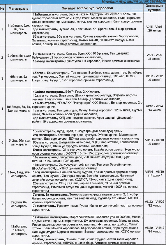 | Маргаашнаас халуун ус хязгаарлаж засвар хийх хуваарь |