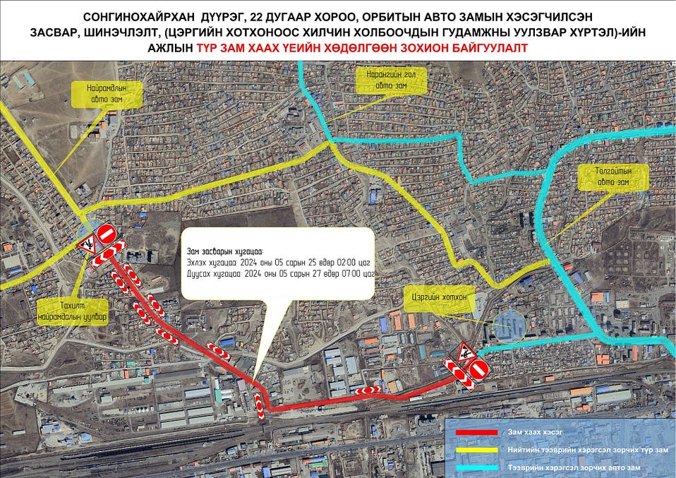 | Орбитын авто замыг хааж хэсэгчилсэн засвар, шинэчлэлтийн ажлыг хийж гүйцэтгэнэ |
