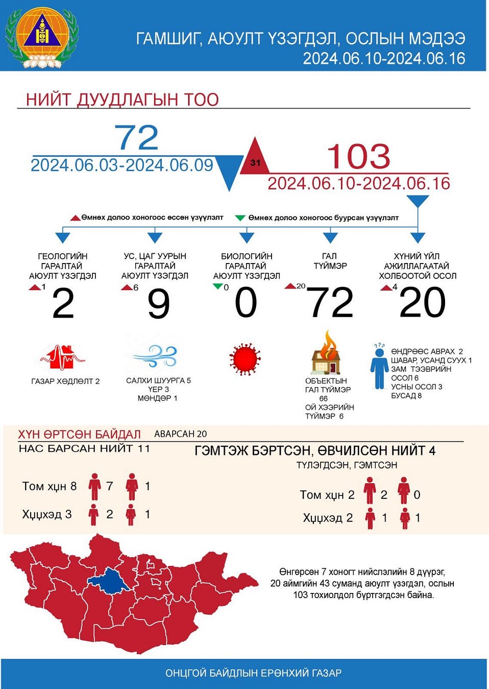 | Нийт дуудлагын 72 нь ахуйн хүрээний гал түймрийн дуудлага байжээ |