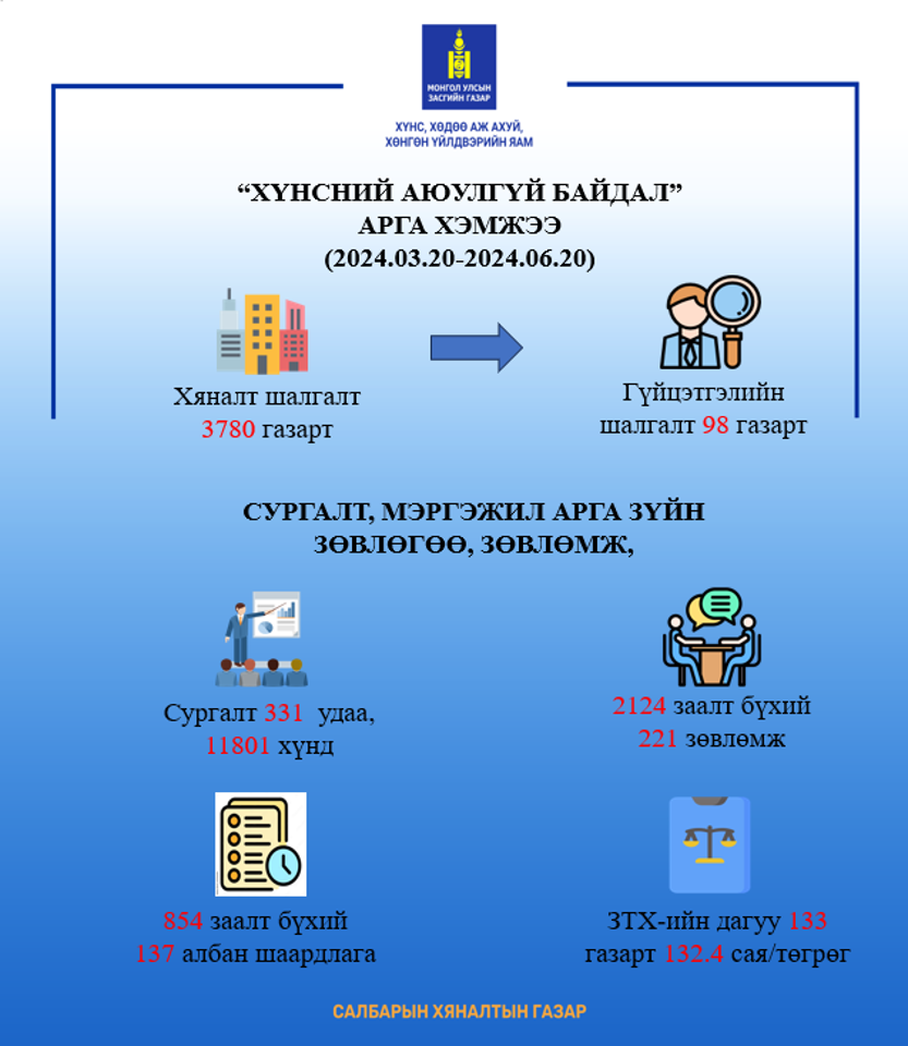 | УЛСЫН ХЭМЖЭЭНД 3780 ГАЗРЫГ ХАМРУУЛАН ХЯНАЛТ ШАЛГАЛТЫН АЖЛЫГ ХИЙЖ ГҮЙЦЭТГЭВ |