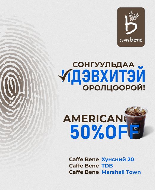 Сонгуулиа өгөөд Американо 50 хувийн хөнгөлөлттэй аваарай