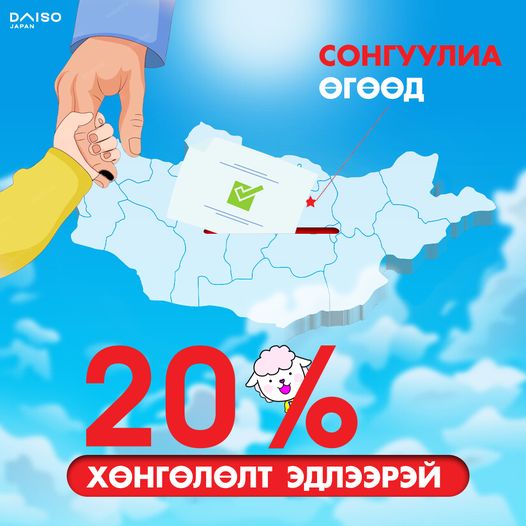 Сонгуулиа өгөөд зургадугаар сарын 30-ны өдөр хүртэл 20 хувийн хөнгөлөлт эдлээрэй.