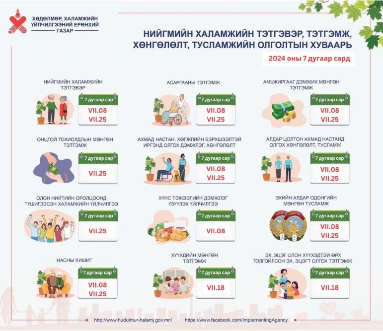 | Ирэх сард халамжийн мөнгө олгох хуваарь |
