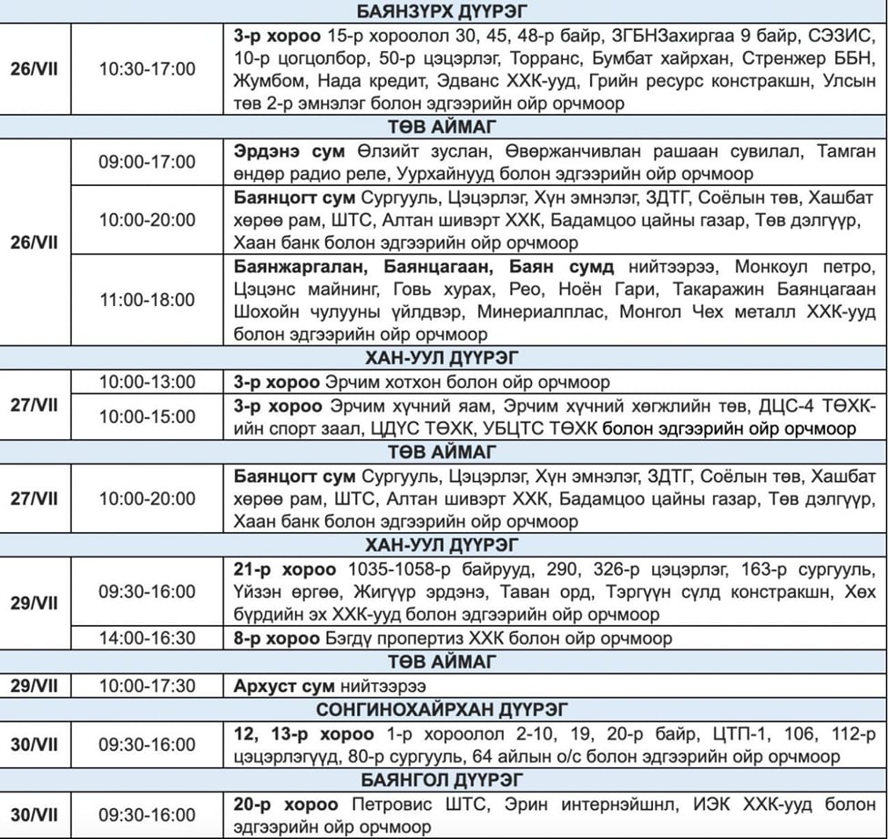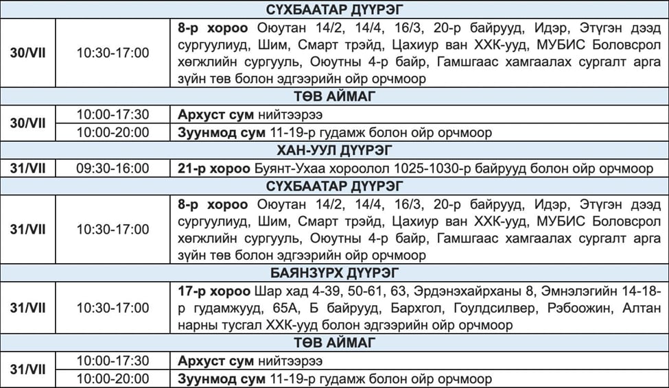 | Наймдугаар сарын 1 хүртэл цахилгаан хязгаарлах хуваарь |