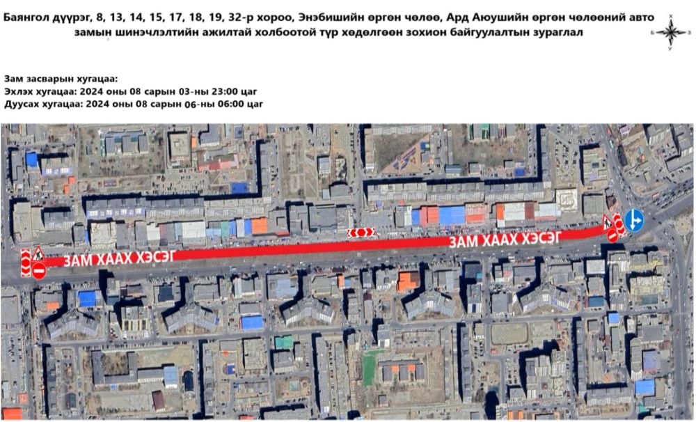 | Ахуйн үйлчилгээний уулзвараас Өргөө кино театрын уулзвар хүртэлх авто замыг хааж, шинэчилнэ |
