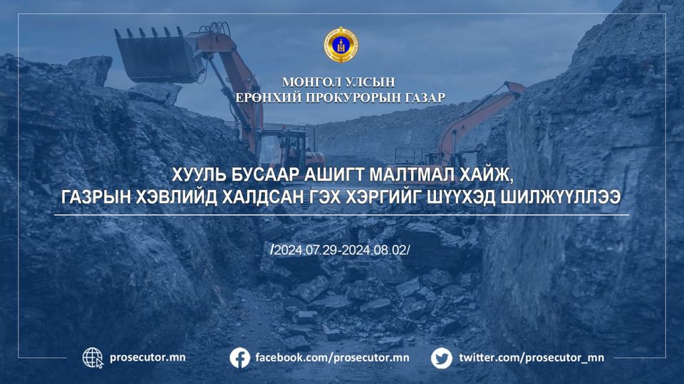 | Хууль бусаар ашигт малтмал хайж, газрын хэвлийд халдсан гэх хэргийг шүүхэд шилжүүлжээ |