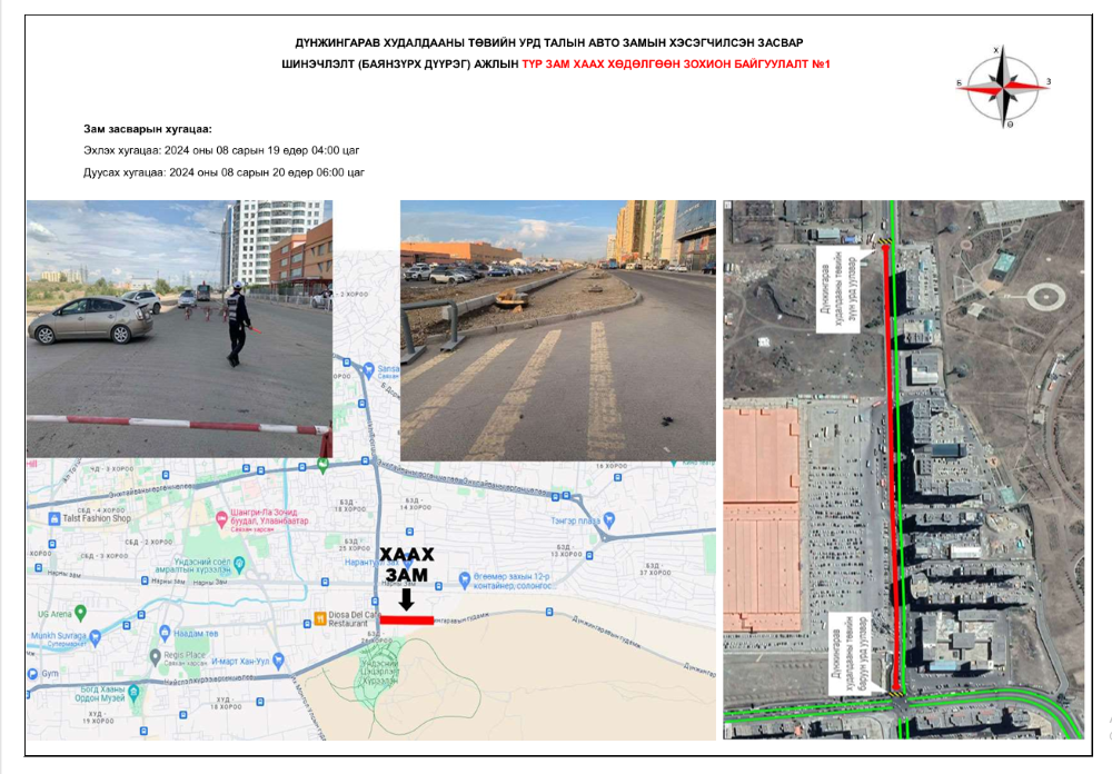 | "Дүнжингарав" худалдааны төвийн урд талын авто замыг түр хааж, шинэчилнэ |