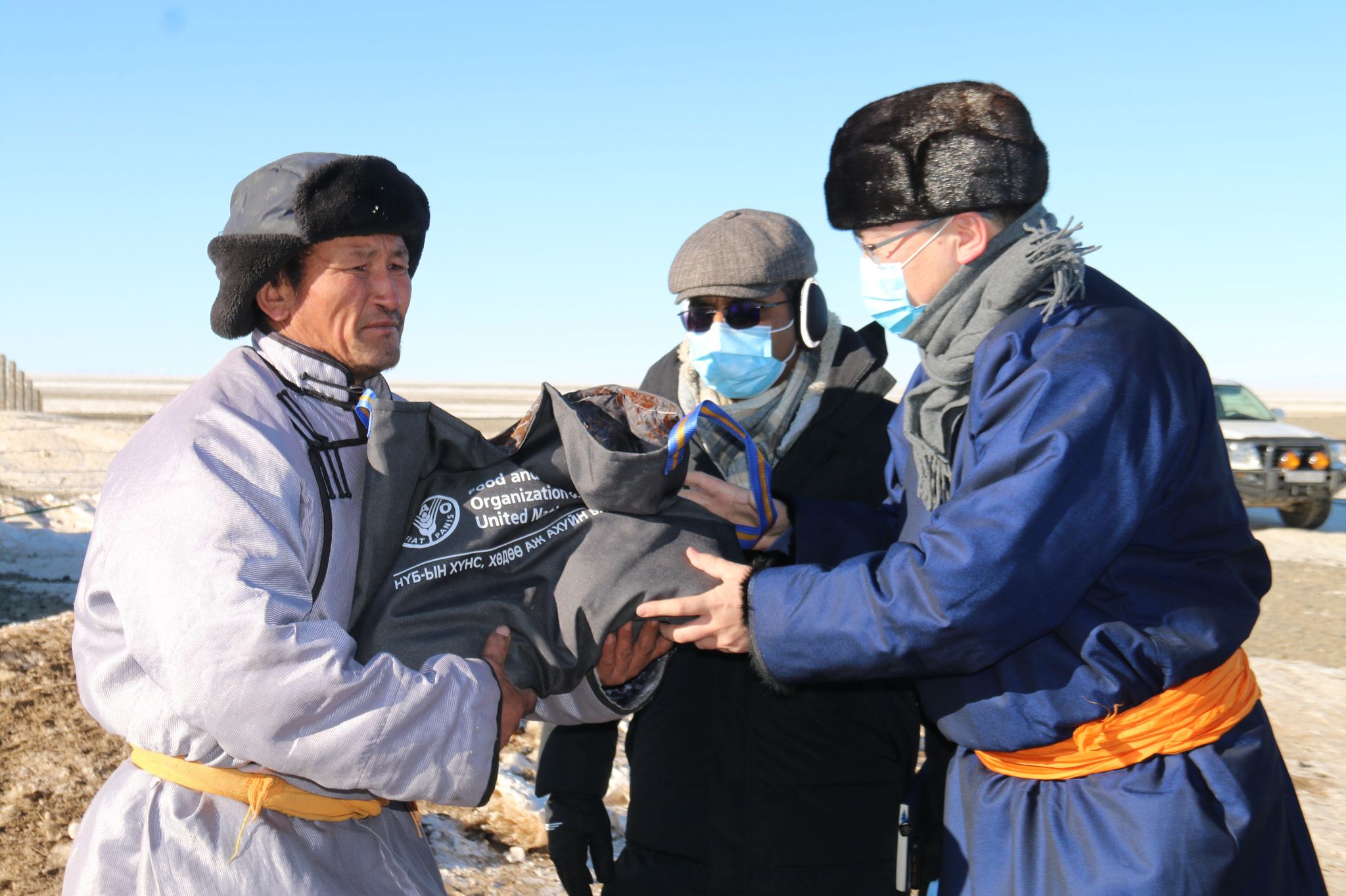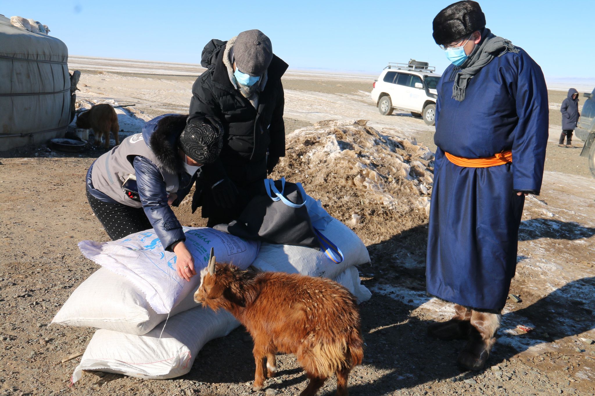 ХХААХҮЯ-ны Төрийн нарийн бичгийн дарга Т.Жамбалцэрэн, НҮБ-ын ХХААБ-ын Монгол дахь суурин төлөөлөгч Винод Ахужа нараар ахлуулсан баг 2021 оны 1 сарын 17,18,19-ны өдөр өвөлжилт хүндэрсэн Өвөрхангай, Баянхонгор, Говь-Алтай аймагт ажиллаж, зорилтот бүлгийн малчдад тэжээлийн тусламжийг хүргэсэн байна. Мөн өвөлжилтийн нөхцөл байдал, өвс тэжээлийн хүртээмж, түгээлтийн ажилтай газар дээр нь танилцаж, зорилтот бүлгийн малчдад өвс тэжээлийг хүргэх ажлыг эрчимжүүлэх чиглэлээр ажилласан юм.