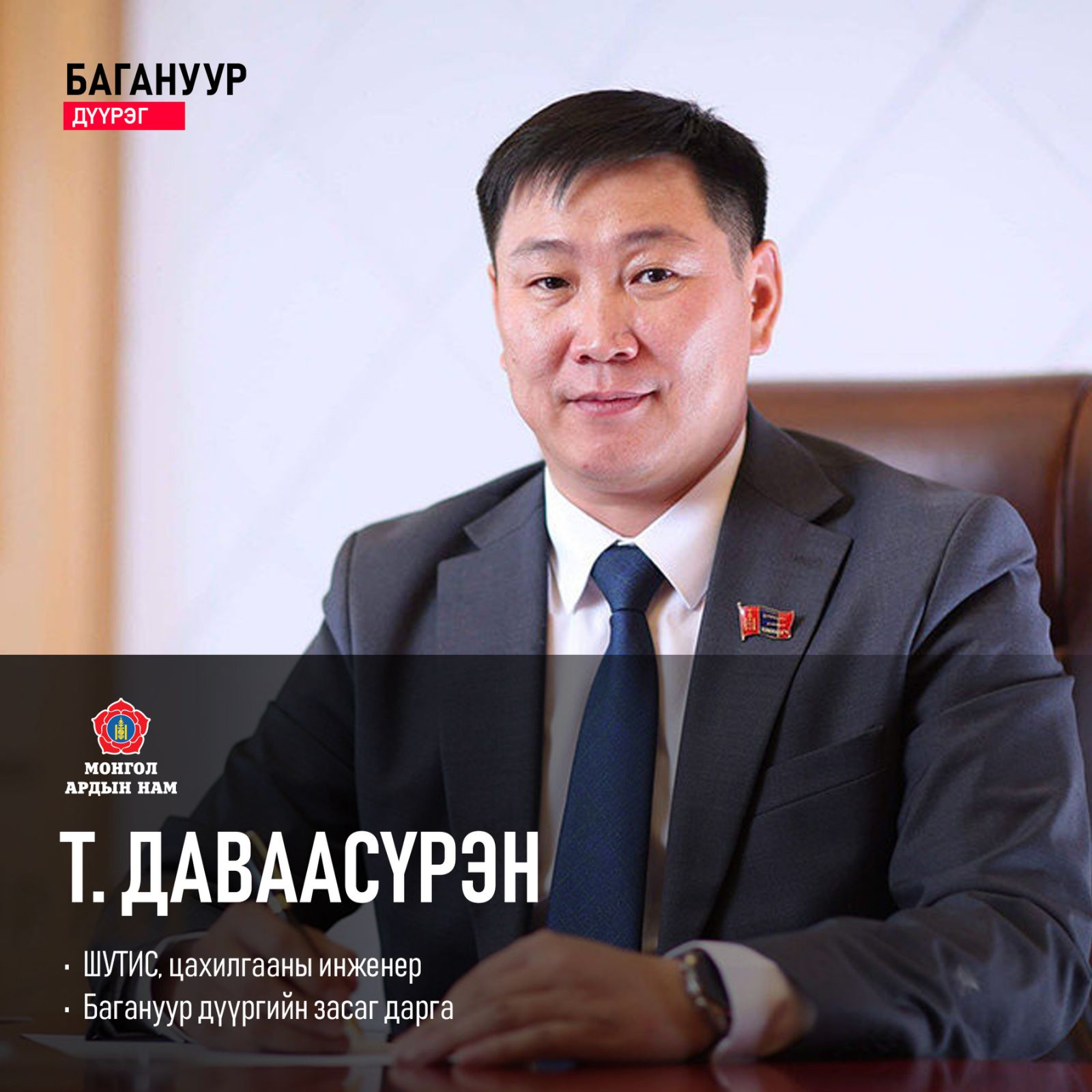 Багануур дүүргийн Засаг дарга, нэр дэвшигч С.Даваасүрэн ШУТИС-ыг цахилгааны инженер мэргэжлээр дүүргэжээ. Ажлын гараагаа “Багануур Зүүн өмнөд бүсийн цахилгаан түгээх сүлжээ” ТӨХК-аас эхэлж байжээ