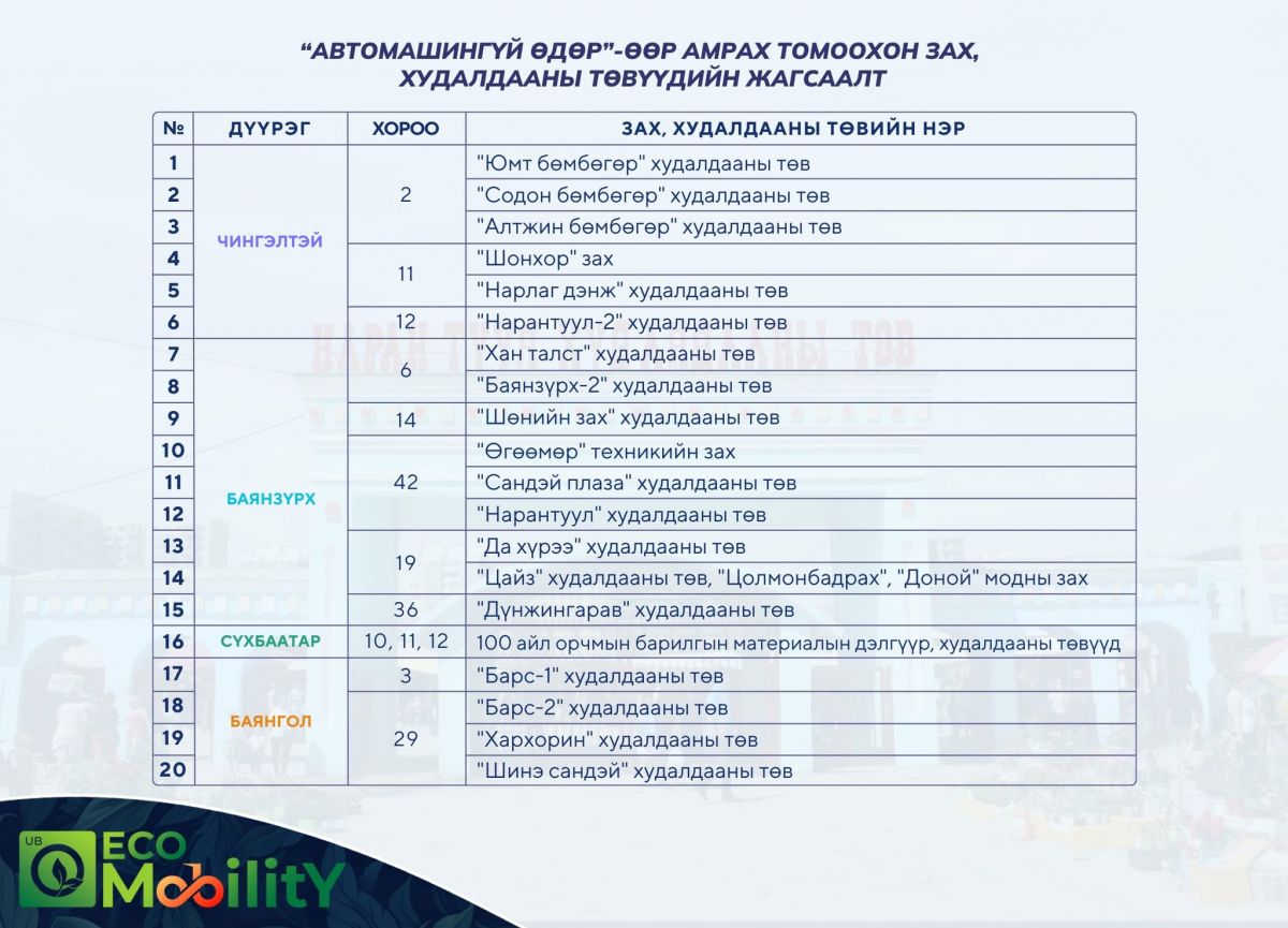 | ТАНИЛЦ: Өнөөдөр ажиллахгүй 20 худалдааны төв |