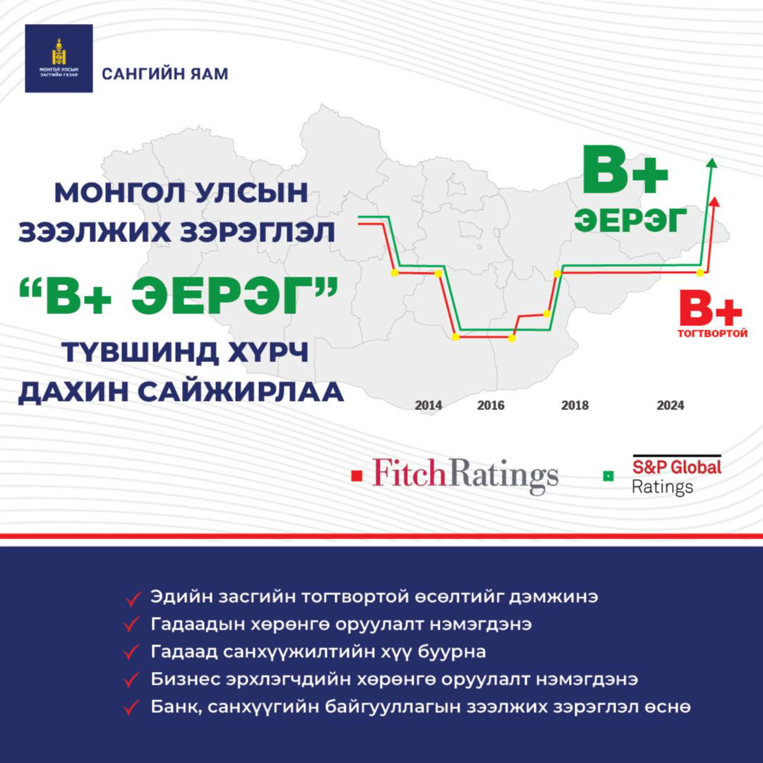 | Монгол Улсын зээлжих зэрэглэл нэг шат ахиж “В+,эерэг” болсныг “S&P”агентлаг зарлалаа |