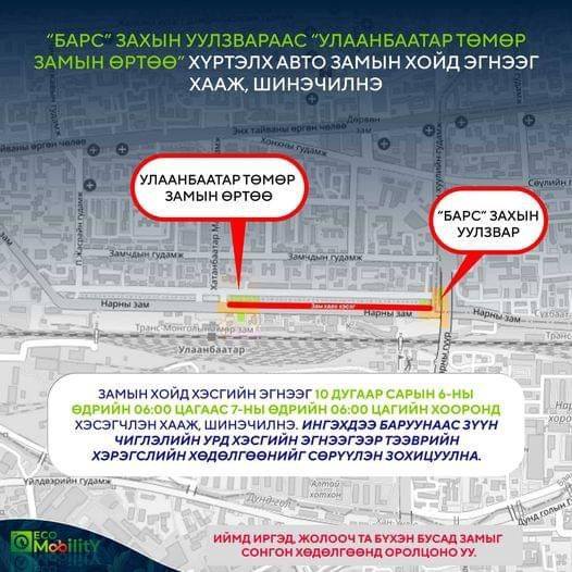 | "Барс" захын уулзвараас "Улаанбаатар төмөр замын өртөө" хүртэлх авто замын хойд эгнээг маргааш нээнэ |