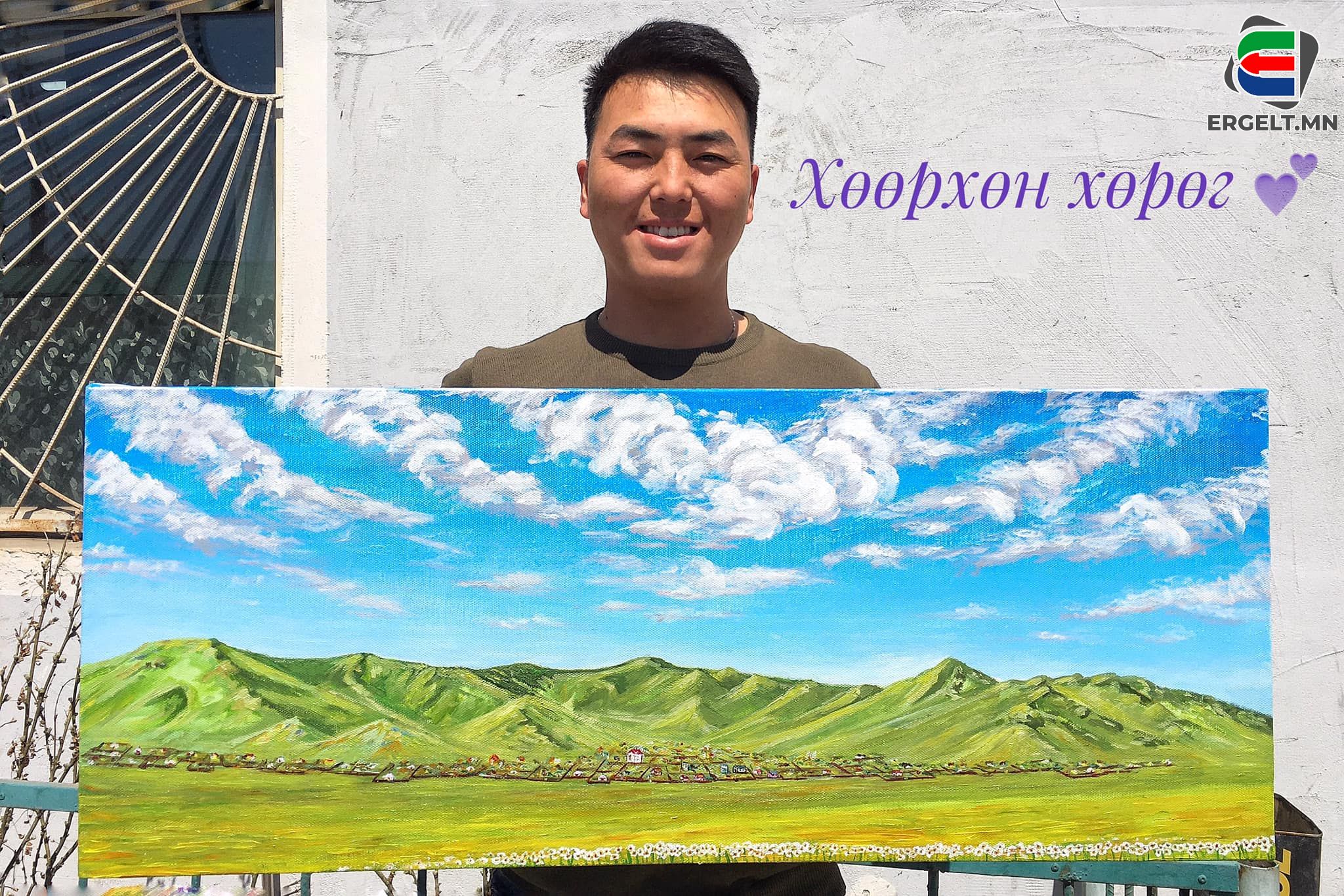 - Би хана, хашаа, хаалган дээр зураг зурдаг болоод таван жил болж байна. Нийтийн байранд амьдардаг байхдаа өнөөх байрныхаа гадна хашааны хаалган дээр хоёр хоточ нохой зурж энэ бүхэн эхэлсэн дээ. Ингээд үргэлжлүүлэн хүүхдийн тоглоомын талбай, хашаа, хаалган дээр зурах болсон. Сүүлд эко Улаанбаатар зургийг зурсан. Багаасаа л авдрын нүүрэн дээр шохойгоор зураг зураад сууж байдаг хүүхэд байсан гэсэн. Нимгэн дөрвөлжин шугамтай дэвтрийг дүүртэл нь морь зурчихаад, цоортол нь баллуурдаад дахиад зурна. Хээр талд ургасан тэр олон өнгийн цэцгийг яаж зурж, өнгийг нь яаж гаргахаа мэдэхгүй биширч зогсдог хүүхэд байлаа. Зурах дуртай байсан ч зураач болно гэж бодоогүй. Гэхдээ сургуульд байхдаа бүх л зургийн тэмцээнд орж, тэргүүн байрт шалгардаг байсан. Хичээлүүдэд жигд сайн байсан учраас багштайгаа ярилцаад хэл шинжлэлийн мэргэжлээр их сургуульд сурсан. Зураг зурж эхлэхдээ найзуудыгаа болон олны танил эрхмүүдийг зурж, өөрийгөө хөгжүүлдэг байлаа. Өдөрт заавал нэг зураг зурна. Тухайн өдөр юу болсон, хэр их ядарсан нь огт хамаагүй, заавал нэгийг зурна. Ингэж хичээж өөрийгөө сайн хөгжүүлсэн гэж боддог.