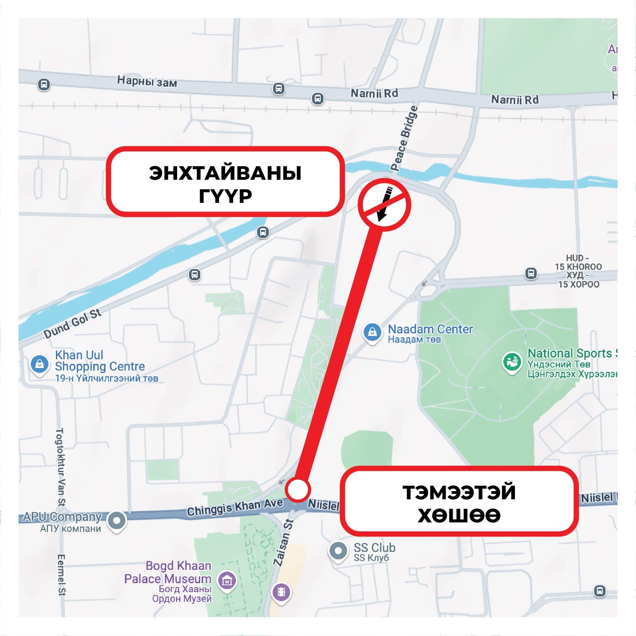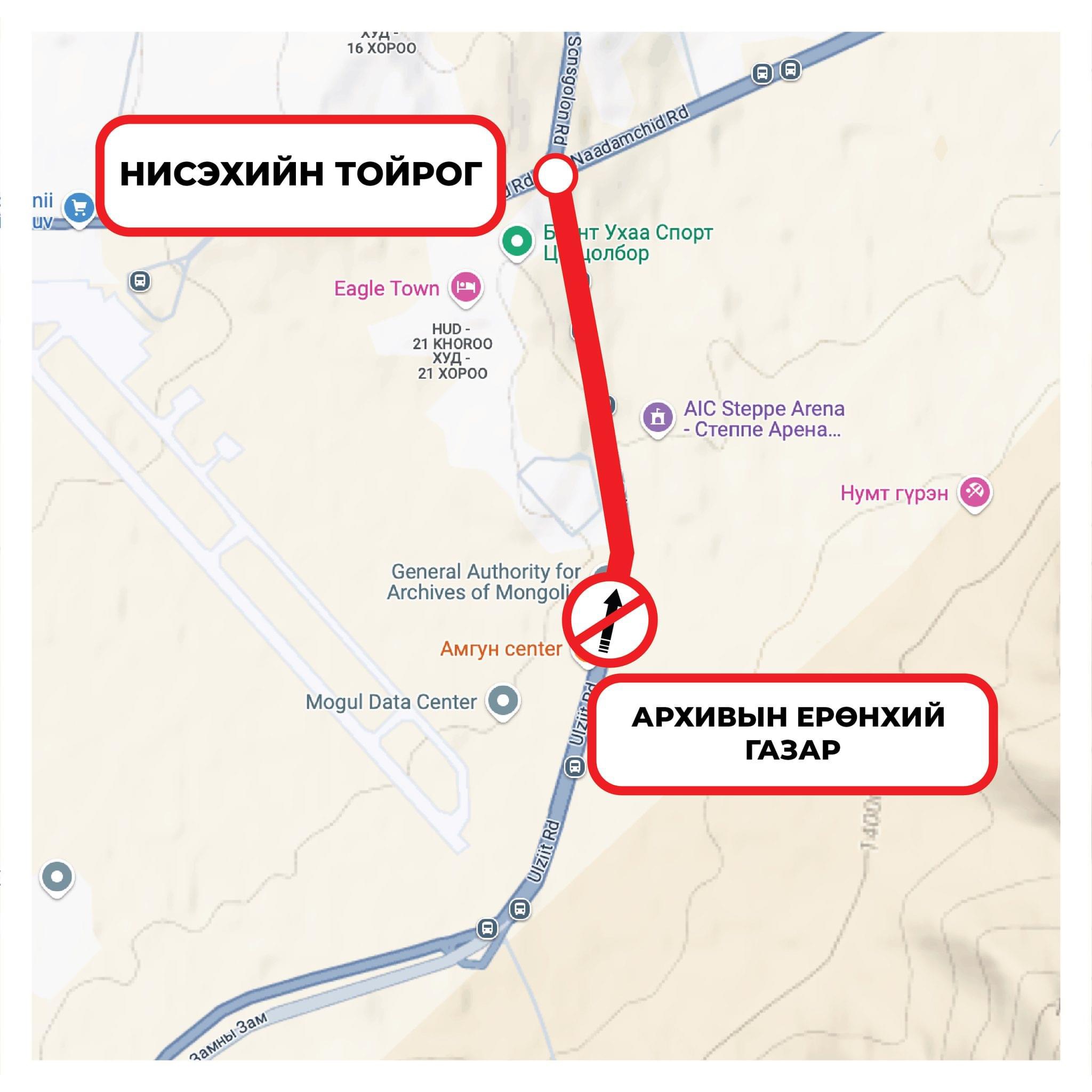 Өчигдөр 23:00 цагаас 21-ний 06:00 цаг хүртэл дараах байршлуудад зам хааж, шинэчилж байна. Иймээс зорчигч үйлчлүүлэгчид нислэгийн хуваарьт цагаас хоцрох эрсдэлийг тооцоолон бусад боломжит замуудыг сонгон зорчиж, нислэгээс 2-3 цагийн өмнө Чингис хаан олон улсын нисэх буудалд ирж, нислэгийн бэлэн байдлыг хангах ёстойг МИАТ-аас анхаарууллаа.
