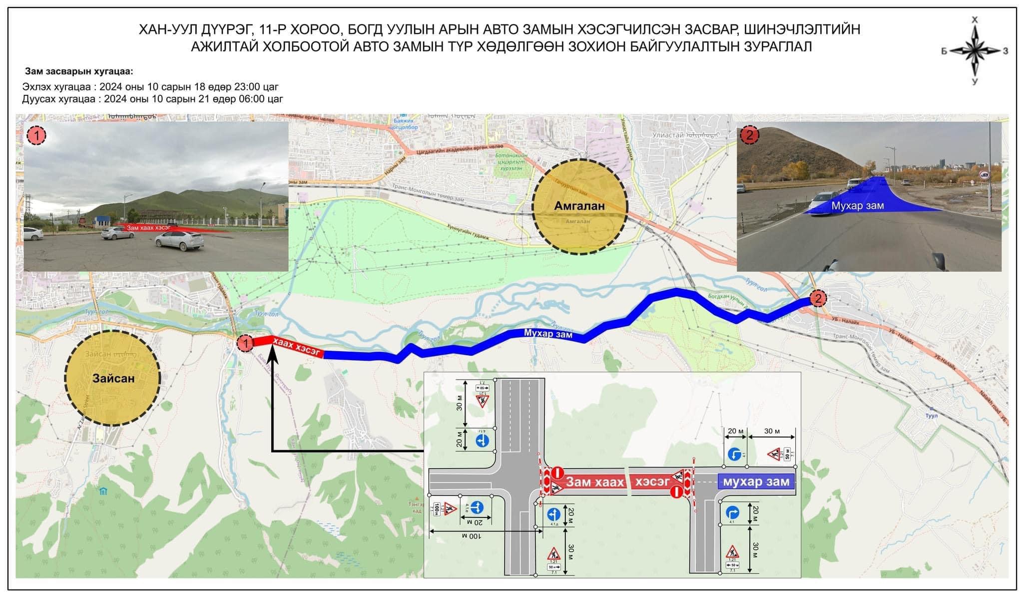 | Амралтын өдрөөр зам хааж, шинэчлэх байршлуудтай ТАНИЛЦ |