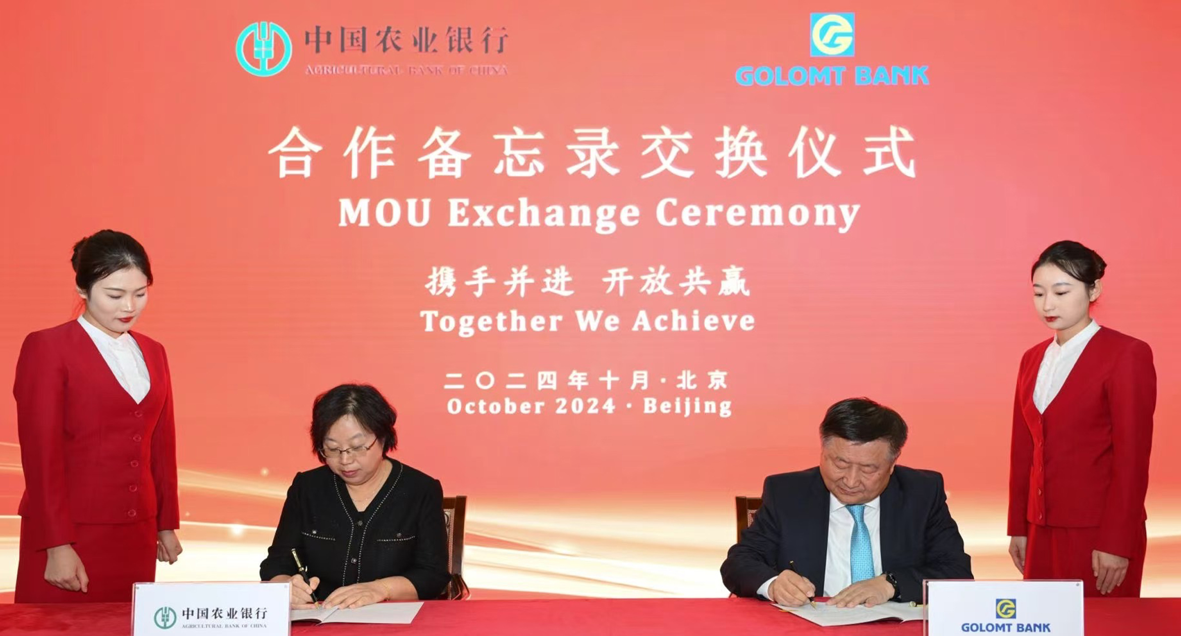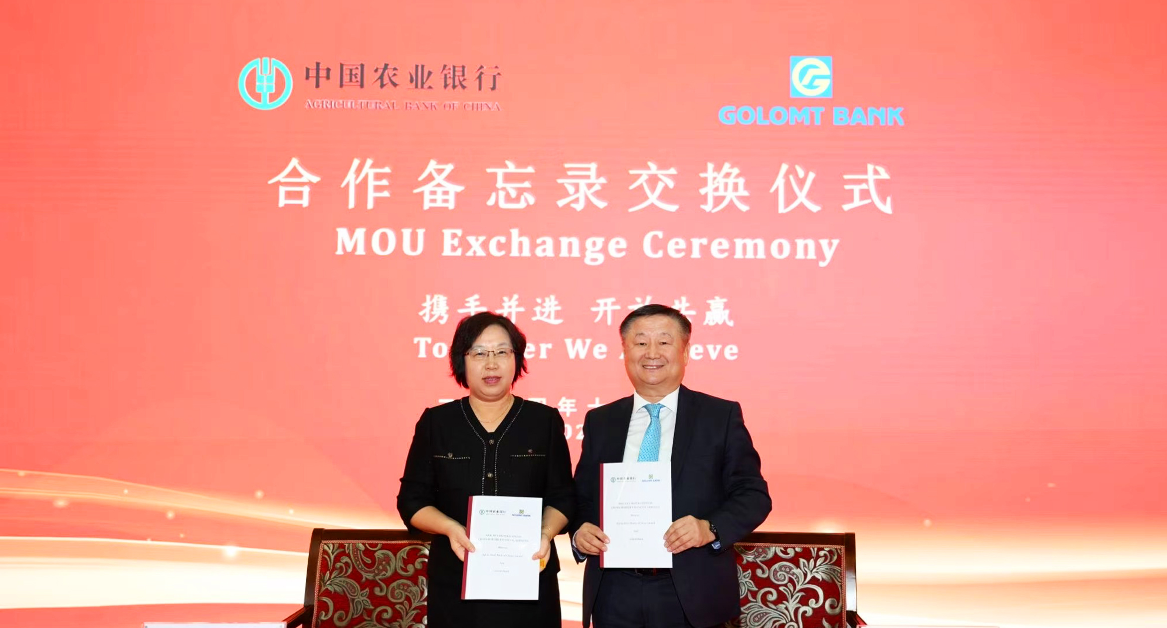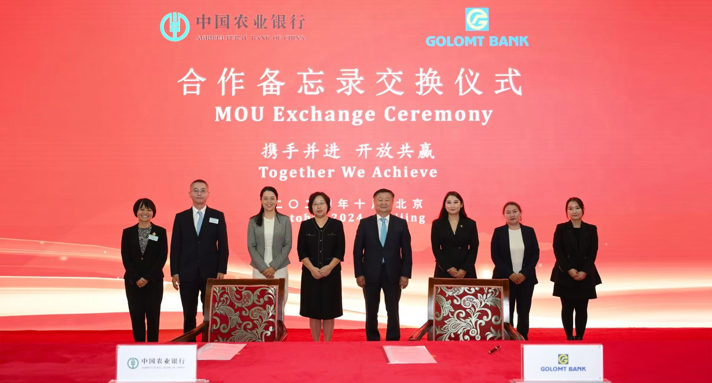 Голомт банк БНХАУ-ын Тариалангийн банктай /Agricultural Bank of China/ 2024 оны 10-р сарын 20-ны өдөр Бээжин хотноо Хятад, Монгол Улсын хоорондын худалдаа, хөрөнгө оруулалтыг дэмжиж ажиллах тухай стратегийн хамтын ажиллагааны санамж бичгийг байгууллаа. Санамж бичигт Голомт банкны Ерөнхийлөгч Г.Ганболд, Хятадын Тариалангийн банкны ТУЗ-ийн Нарийн бичгийн дарга Лию Чинг нар хоёр талыг төлөөлөн гарын үсэг зурснаар талууд хил дамнасан санхүүгийн үйлчилгээгээ өргөжүүлэхээс гадна юанийн гүйлгээ, Хятадын хөрөнгийн зах зээлийн платформ болох China Interbank Bond Market /CIBM/-д идэвхтэй хамтарч ажиллахаар болсон юм.